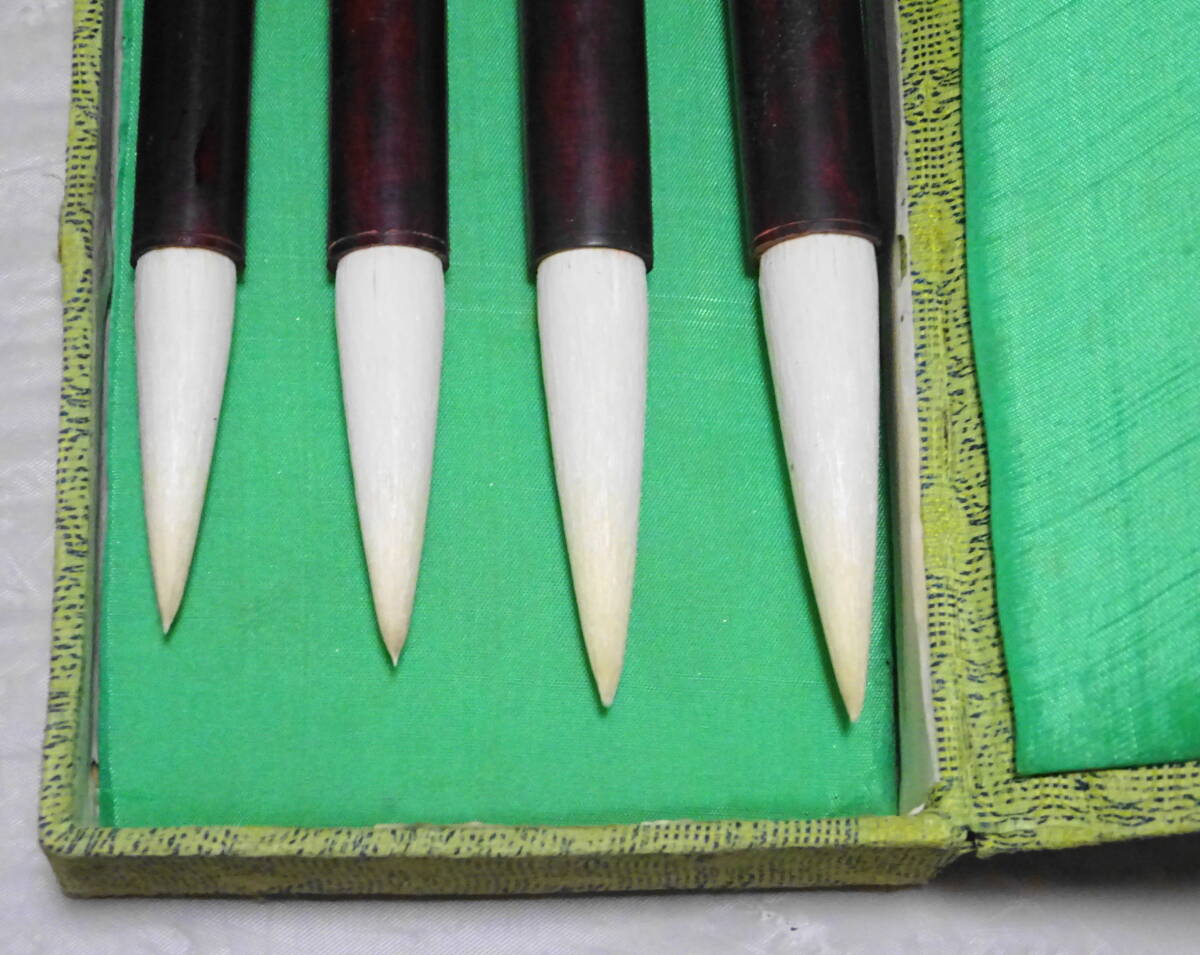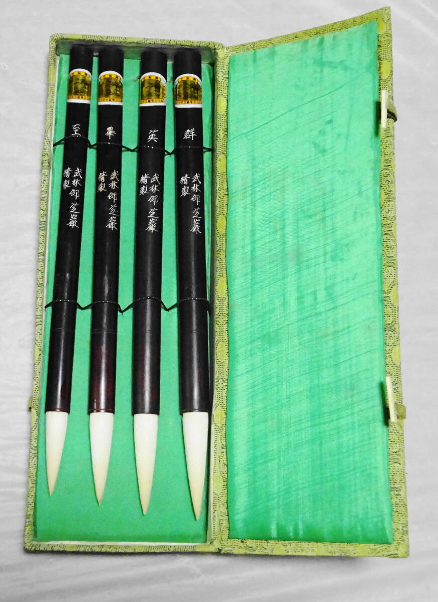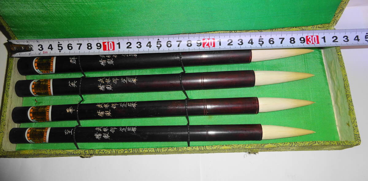 【未使用】中国筆 唐筆 至 華 英 群 4本セット 中国 杭州 武林邵芝巖製 1.9×30.5cm 書道筆 文房四宝 高級筆 毛筆 骨董品 習字
