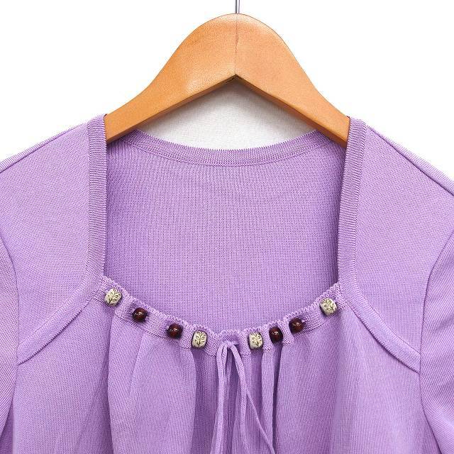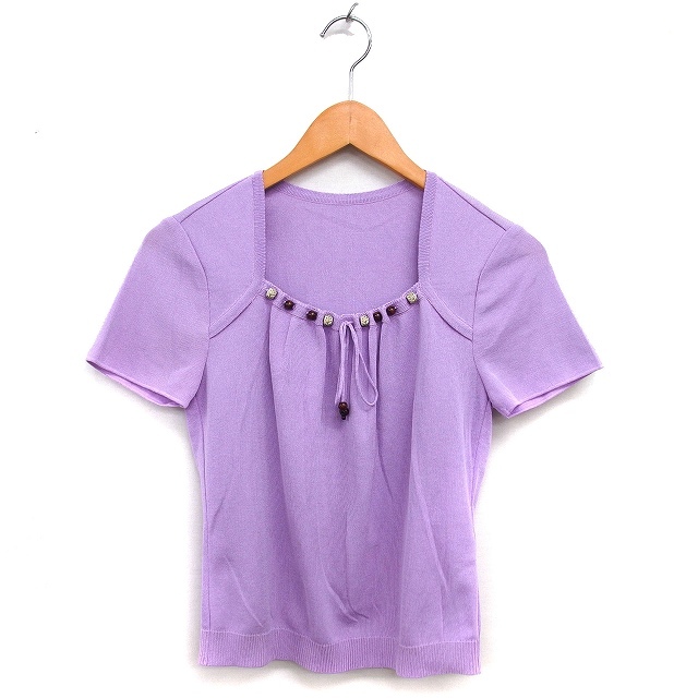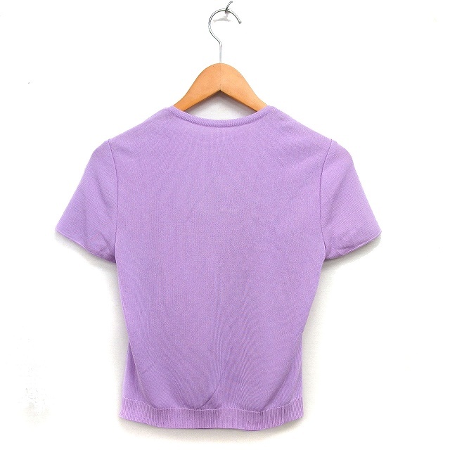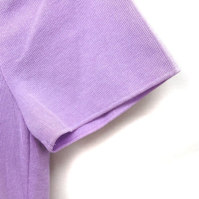 レリアン Leilian ニット セーター リブ コットン混 ハイゲージ トラペーズネック 半袖 9 紫 パープル /NT8 レディース