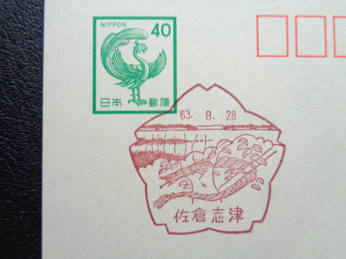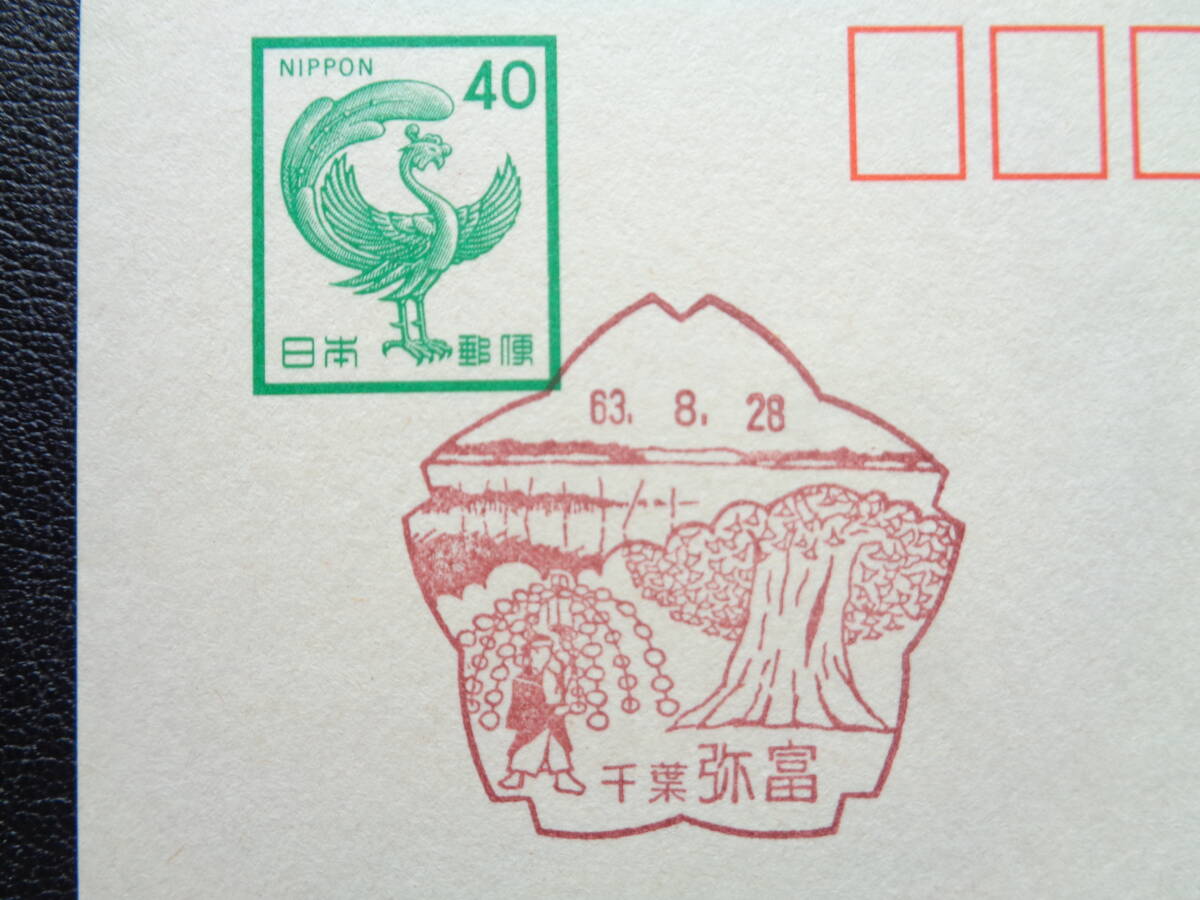 鳳凰はがき    初日印/風景印    千葉県2枚    佐倉志津/S63.8.28   弥富/S63.8.28