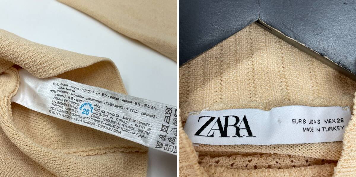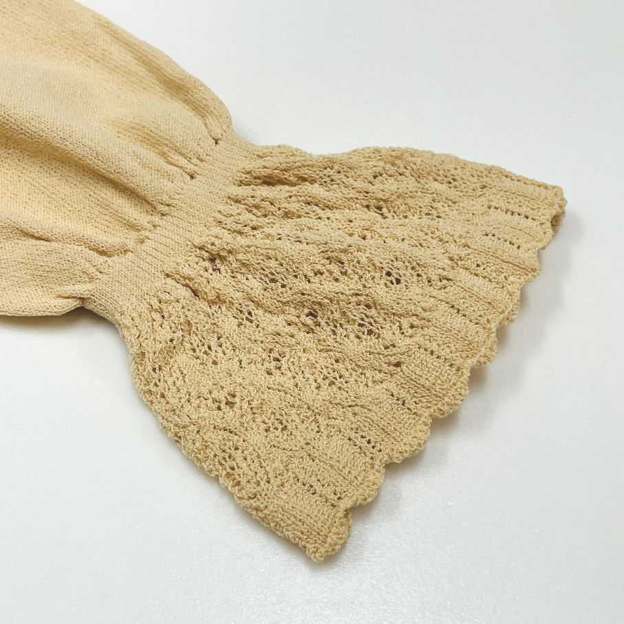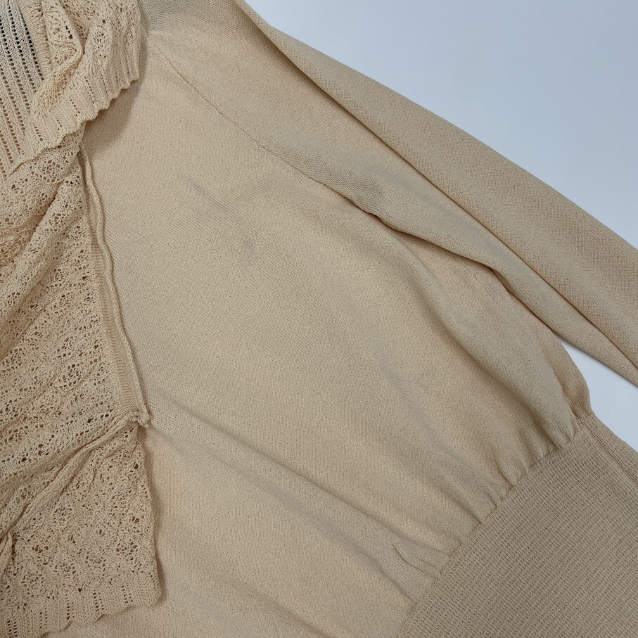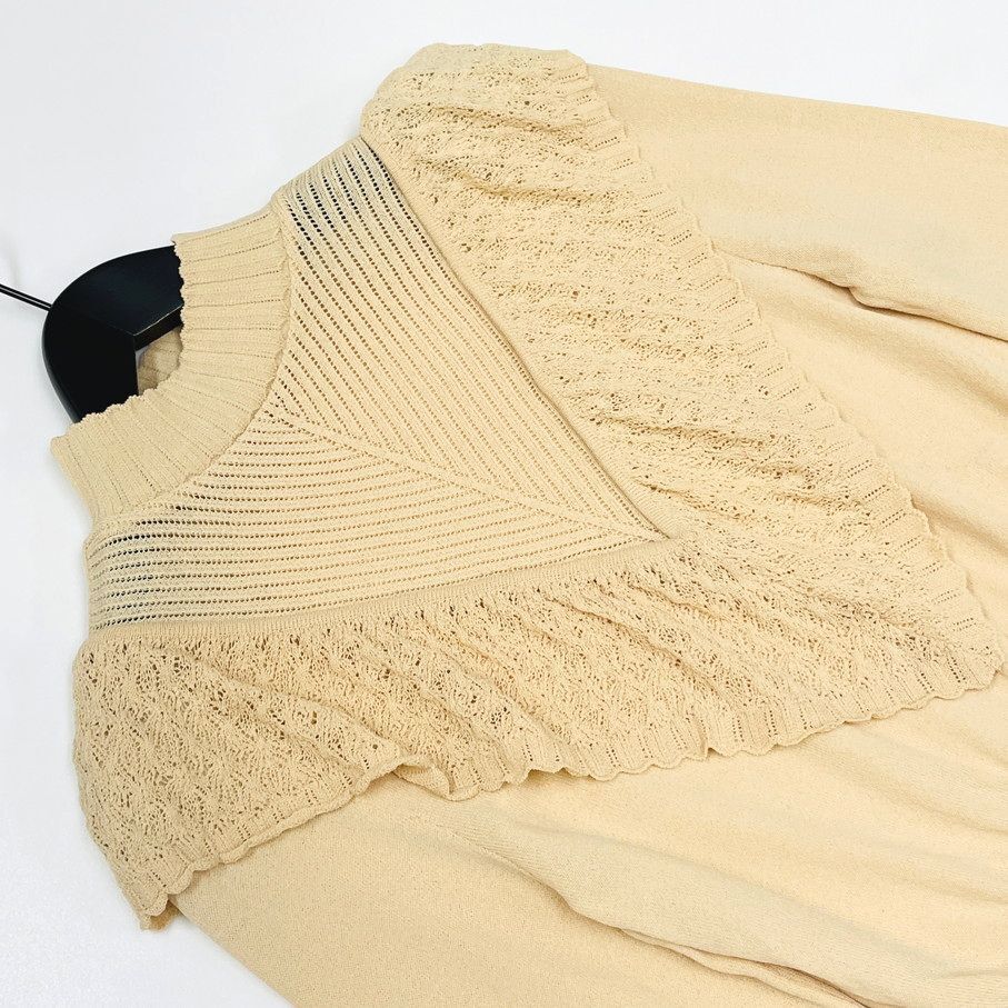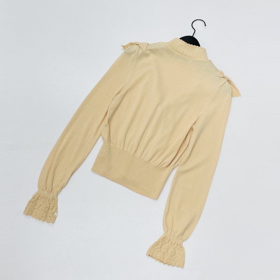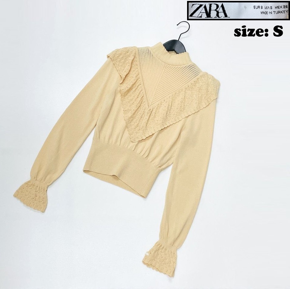 ZARA /S/ ベージュ フリルトリム長袖ニット トップス レディース カジュアル 通勤 フェミニン 大人可愛い生地ナイロン混 デイリー旅行 ザラ