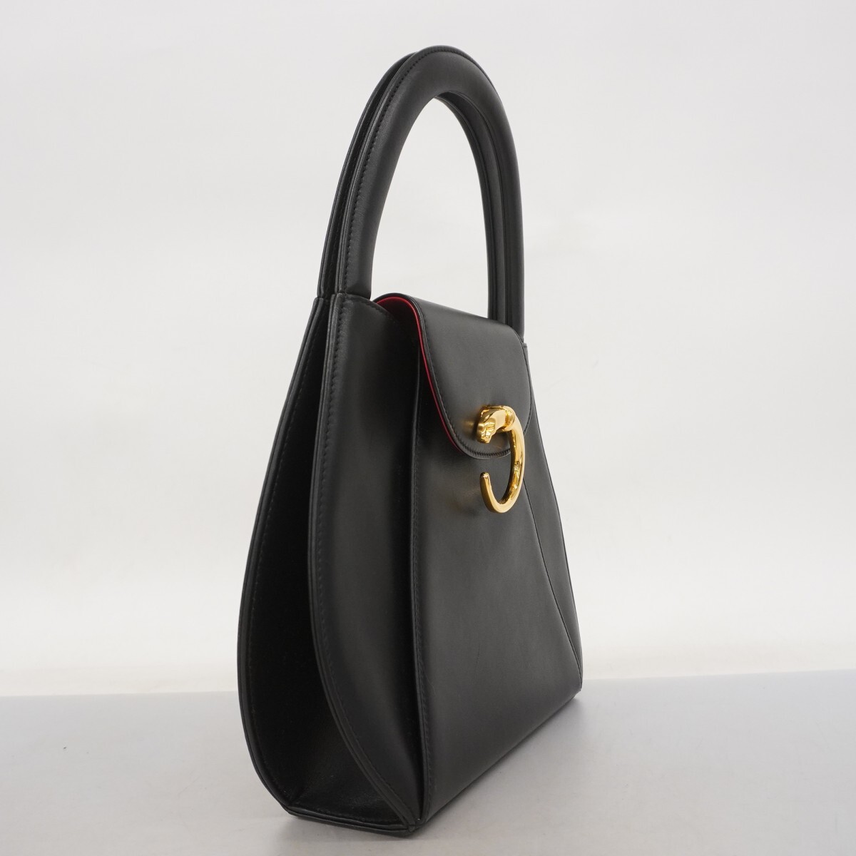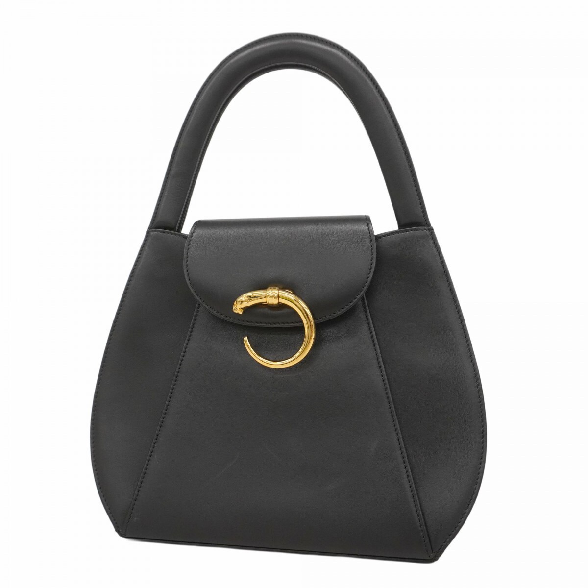 【5mb1146-h】カルティエ ハンドバッグ パンテール レザー ブラック ゴールド金具【中古】レディース