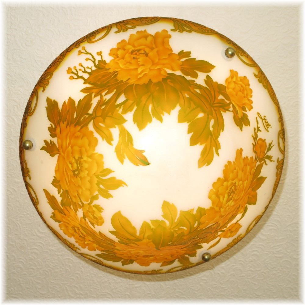 商品説明 | ![]() 【送料無料!】☆豪華ガラス工芸☆新品 アールヌーボー 様式 ガレ風 ガラス工芸アンティークシャンデリア ☆広角LED4灯(\6000-相当)をお付けいたしまして驚きのプライス! エミール・ガレの名はアール・ヌーボーの代表的な担い手として一躍有名になり 彼の様々な技法を駆使して生み出される神秘的なガラス工芸品の数々は美術的に高く評価されました それらの技法は熟練した職人の手により今日に受け継がれ ガレ風の作品として、すべて手作りで作り続けられています。 今回のシャンデリアはそのなかの被せガラス技法で作られた作品です 被せガラスとは何種類もの色ガラスを重ね着させ、その後に表面から彫刻を施し深く彫る事により下の色が現れ変化にとんだ模様を出すことができます 重ね具合や厚さにより同じガラスでもまったく別の雰囲気になります 実物は写真で見るより数段すばらしく インテリアとしての色調と電気をつけたときのうっとりするような美しい色調の両方をご堪能いただけます この機会に高級感あふれるガラス工芸シャンデリアはいかがですか、お部屋のムードが一変します。 大手家具メーカー・専門量販店等で数十万で販売されているシャンデリアと同等の商品です シャンデリア本体は調光にも対応しており調光スイッチでお好みの明るさに調整可能です♪ ※調光が必要の場合調光対応LED(1個¥200-アップ)が必要です サイズ 直径41センチ 天井より下に約43センチ 重量約3~4キロです 取り付けに関しましては引掛けシーリングに対応しております 付属電球・・・口金E26広角LED暖色4個(明るさ40ワット消費電力4ワット¥6000-相当) 白色LEDご希望の場合落札後お申しつけ下さい 商品画像は暖色LEDを装着し撮影しております ![]() |