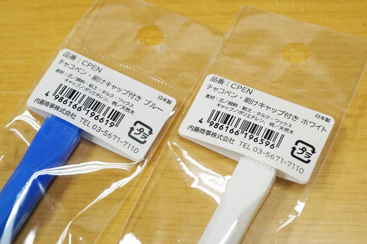 新品未使用品、「チャコペン」ブルーとホワイト2色2点組(ハケキャップ付)での出品でございます。