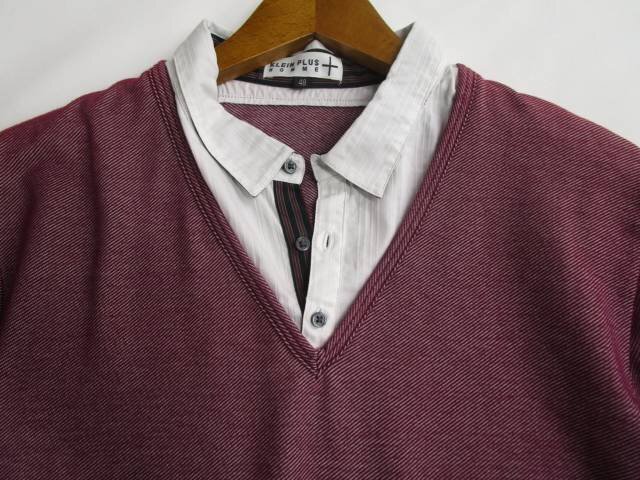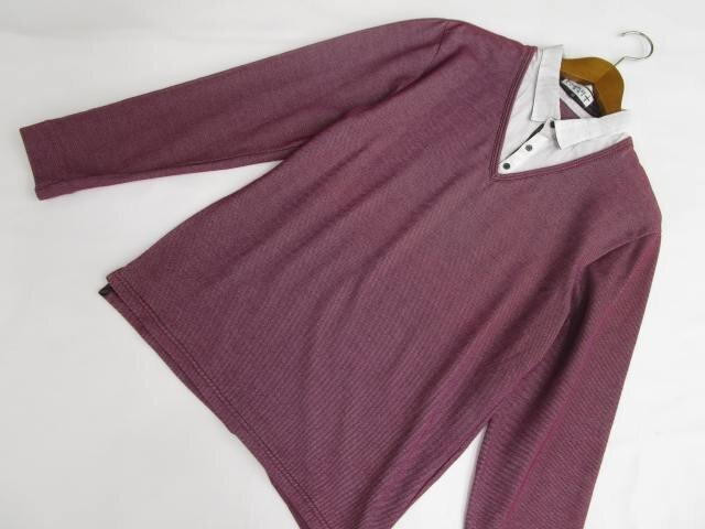 長袖 洗えるフェイクレイヤードシャツ 48 パープル×ホワイト