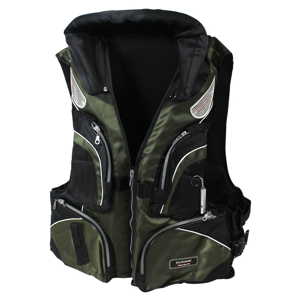 フローティングベスト(笛付き) グリーン 救命胴衣 釣り ベストタイプ 浮力脱着可能 ライフジャケット フィッシングベスト ポケット付き