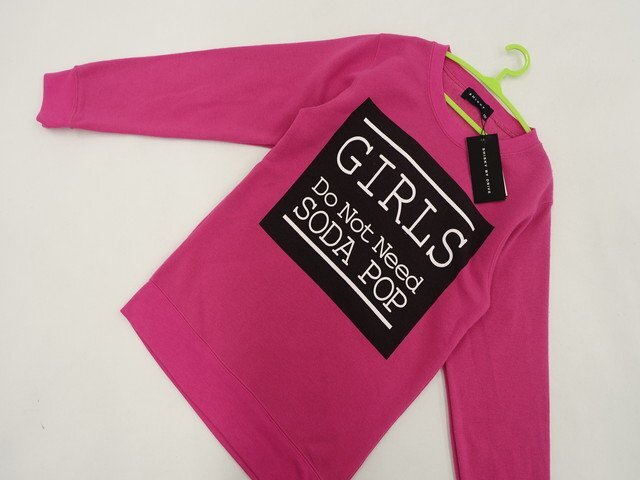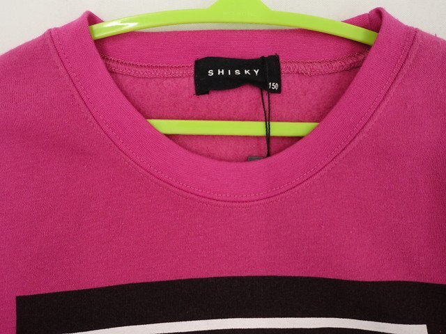 長袖 ラウンドネック 裏起毛トレーナー 150 ピンク地 ブラック 英字
