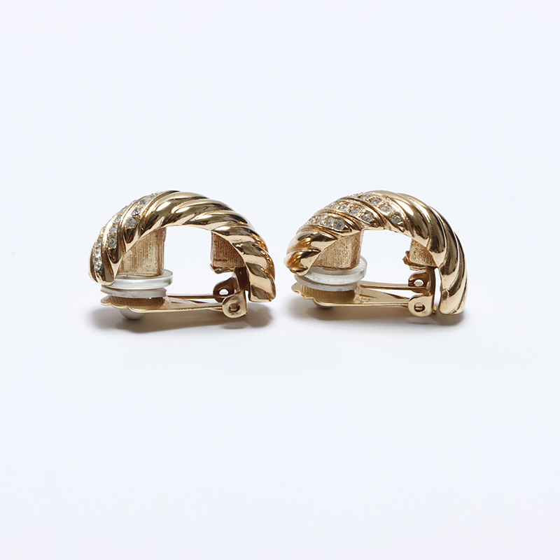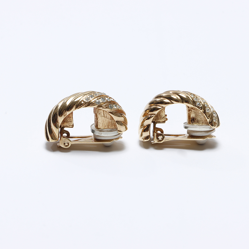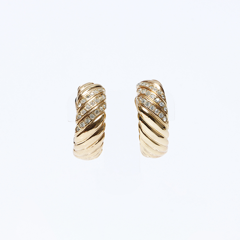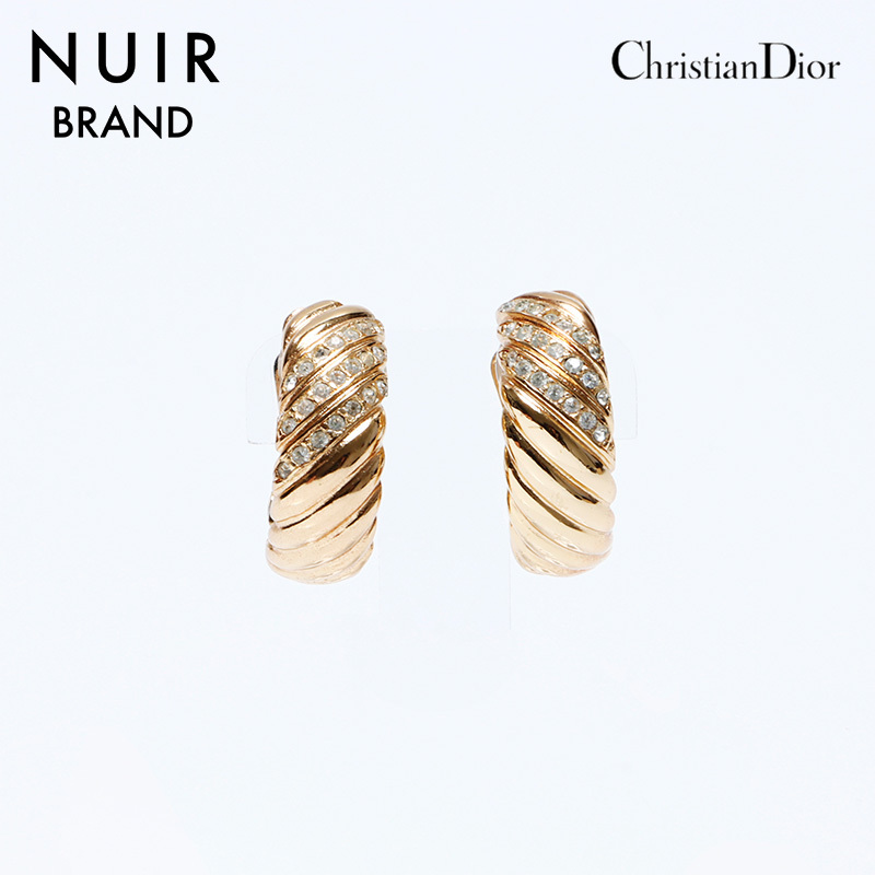極美品 Christian Dior ヴィンテージ ラインストーン イヤリング ゴールド