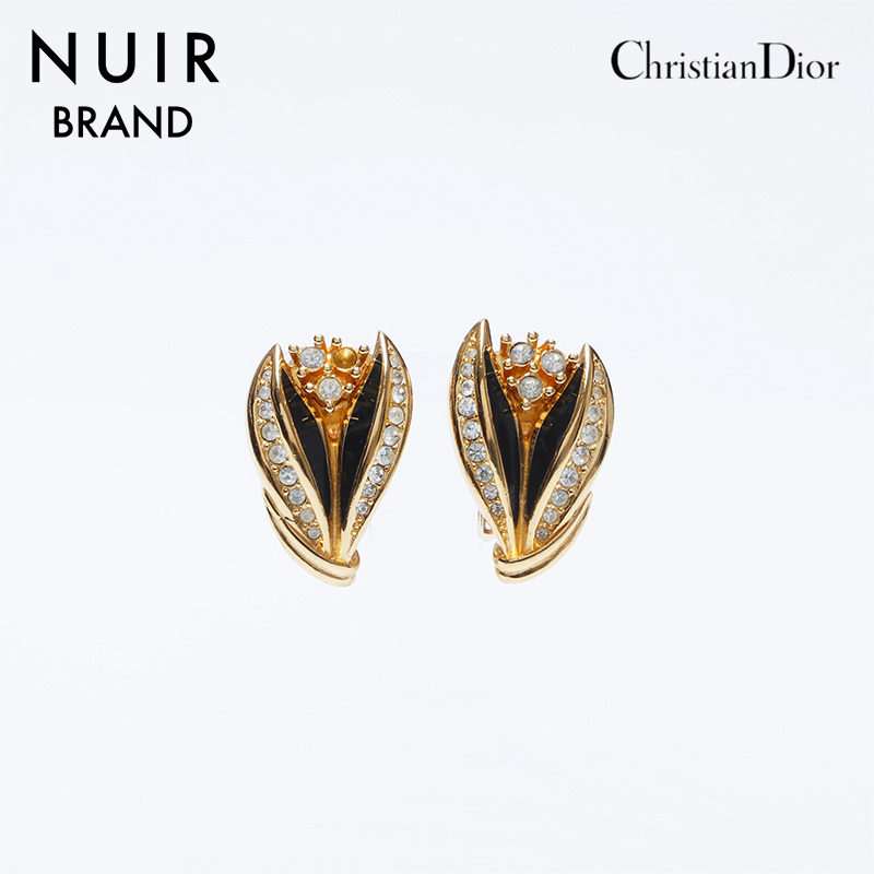 美品 Christian Dior ヴィンテージ ラインストーン イヤリング ゴールド