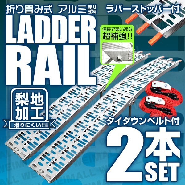 WEIMALL アルミ製 ラダーレール タイダウンベルト付 折り畳み式 スタンド付 耐荷重(約):340kg 全長(約):2180mm Type-B 2本セット 最新型アルミラダー! ATV四輪バギー・ダンプやトラック等にユンボやローラー・耕運機・バイクなどを積込みする為の折りたたみ式アルミラダーです。 表面に梨地処理施しており、通常タイプより滑りにくい構造! 車高の低い積込み時に、とても役に立ちます。 軽量加工、滑り止め加工、脱落防止のタイダウンもついております。 折りたたみ部分や地面接続部分を補強加工しておりますので、より重いものでも耐えられるようになりました。 ※こちらの商品は、在庫切れになりやすい人気商品となりますので、 即決落札・早期ご入金を推奨しております。 |