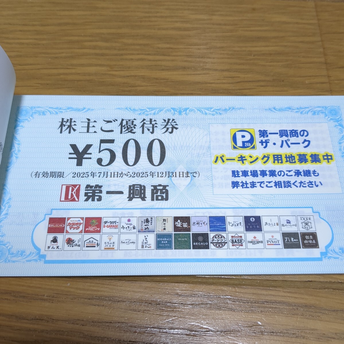 第一興商の株主優待券5000円券(500円券×10枚)になります。