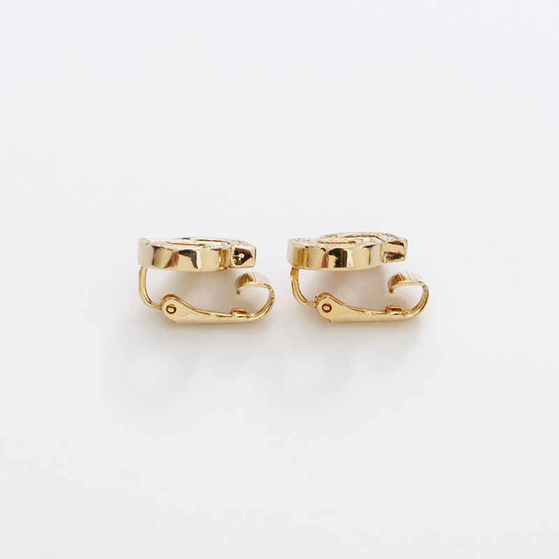極美品 Christian Dior ラインストーン CD ロゴ イヤリング ゴールド