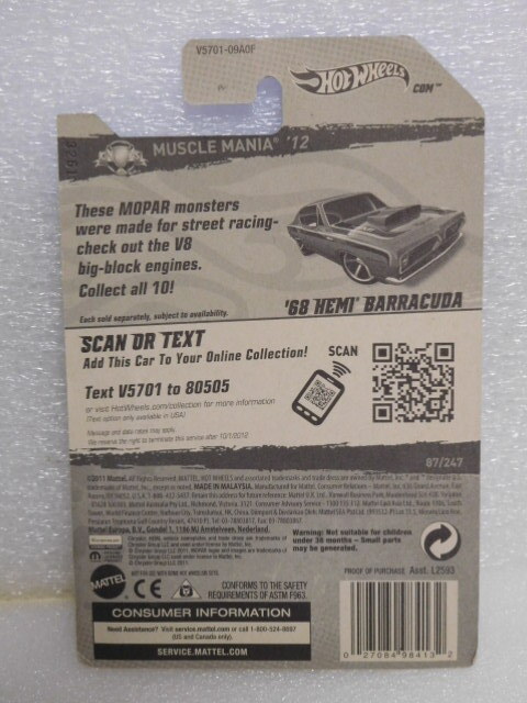 ★ ホットウィール ★ HOTWHEELS ★ MUSCLE MANIA MOPAR ★ 68 ヘミ バラクーダ 紫 ★ 68 HEMI BARRACUDA