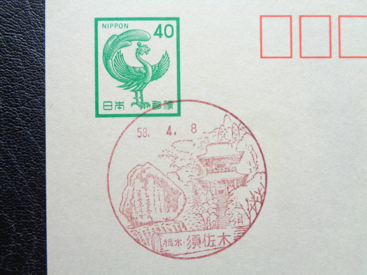 鳳凰はがき    初日印/風景印    栃木県2枚    須佐木/S58.4.8   塩原/S58.4.10