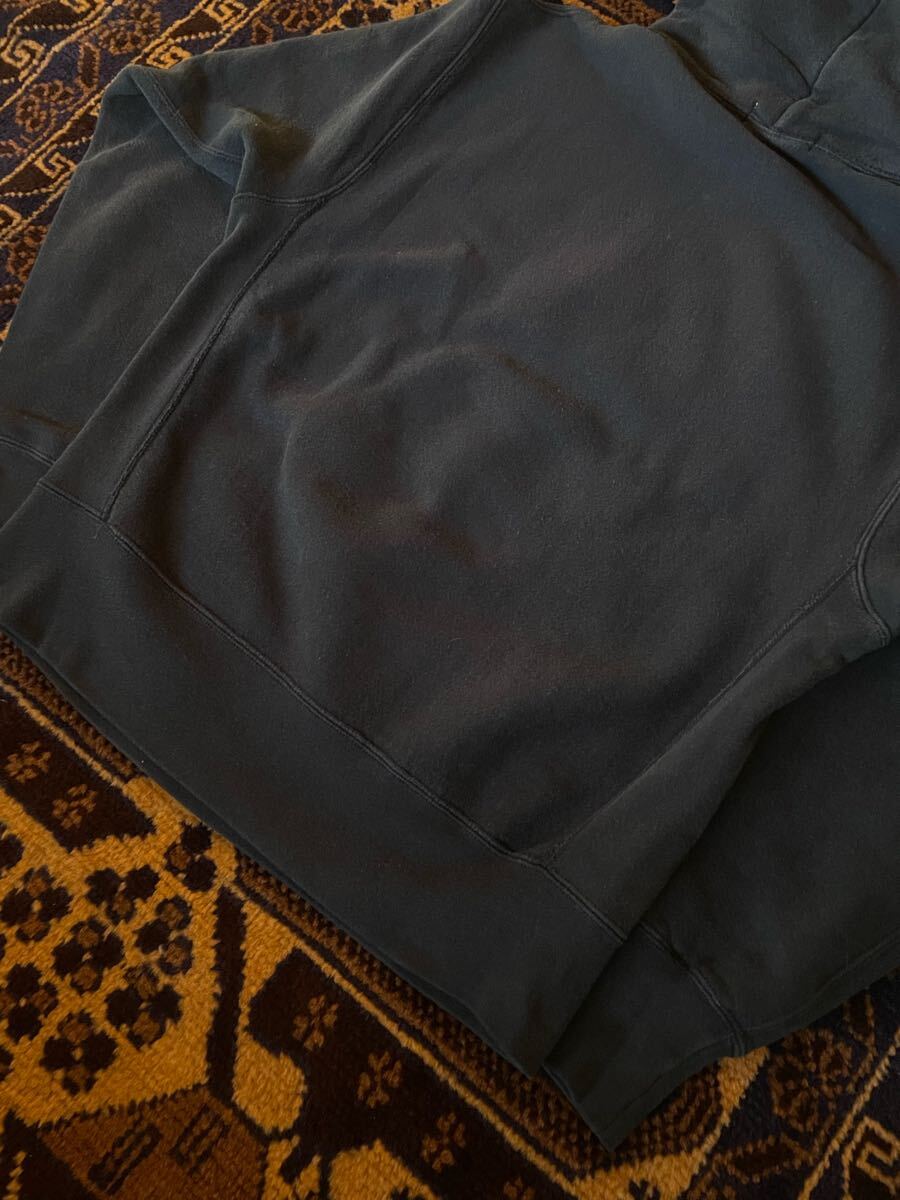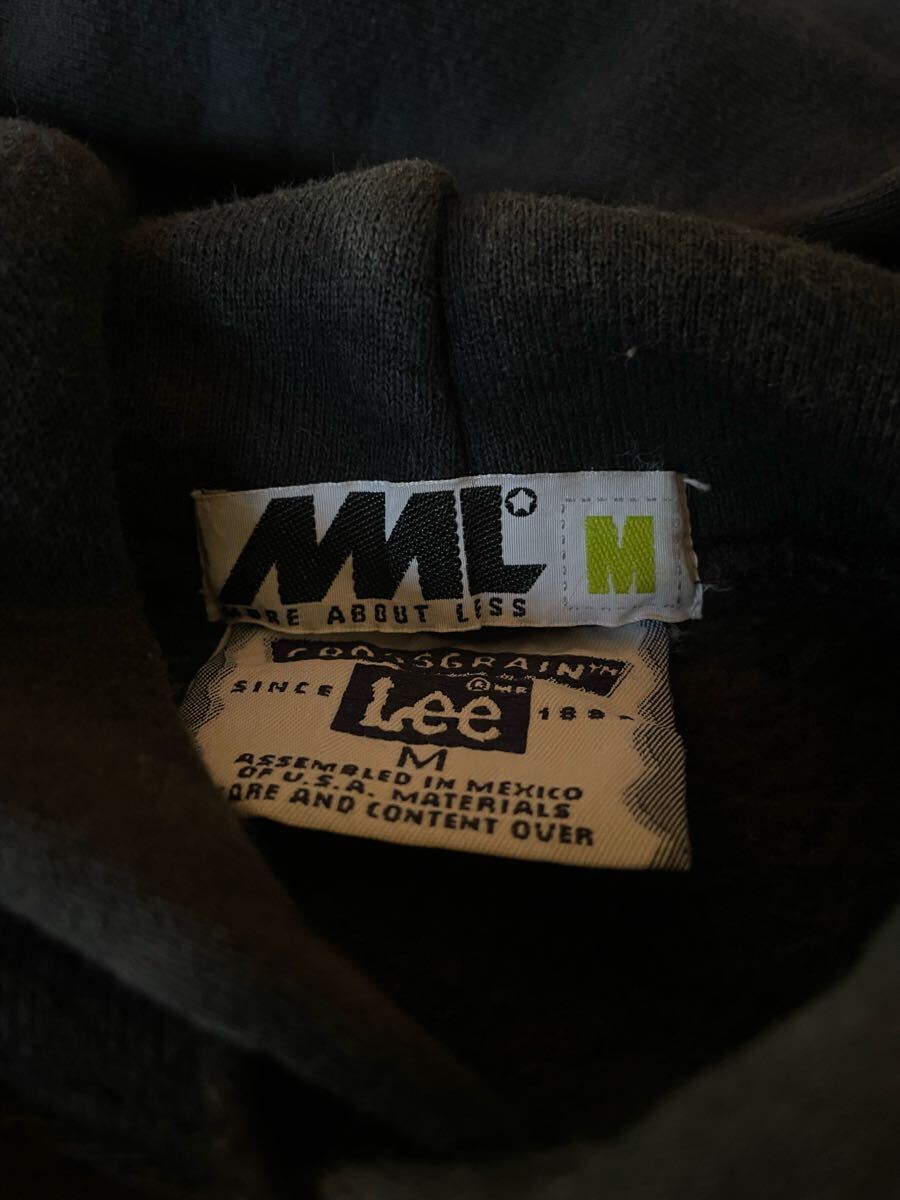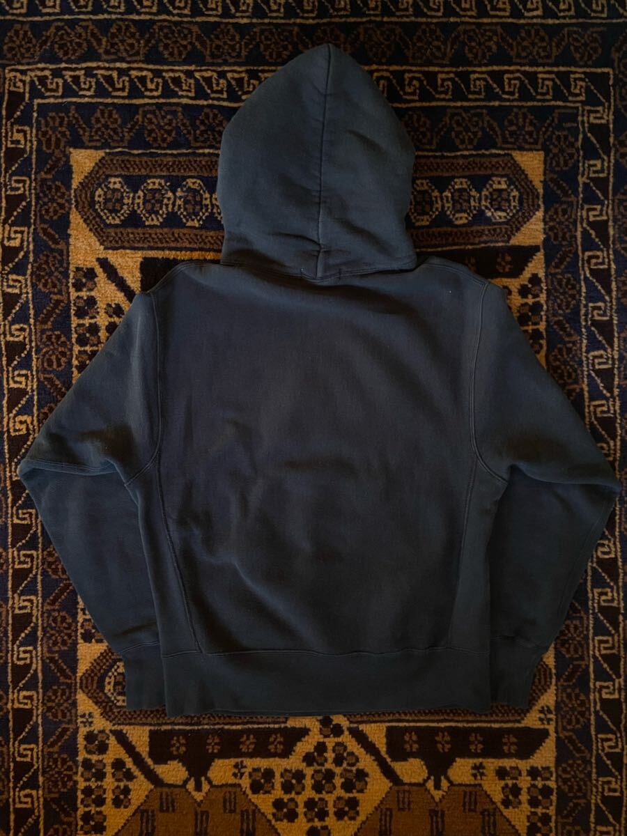 今となってはニューヴィンテージのLeeのリバースウィーブパーカーをボディに、フロントにmore about lessのフルロゴをプリントしてあります。