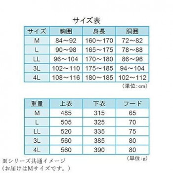 仕様 | 耐水圧:20000mm(初期値) ・防水加工 ・撥水加工 ・ビニル付着脱式フード ・二重袖 ・ベルト通し ・背中に反射ライン付き |