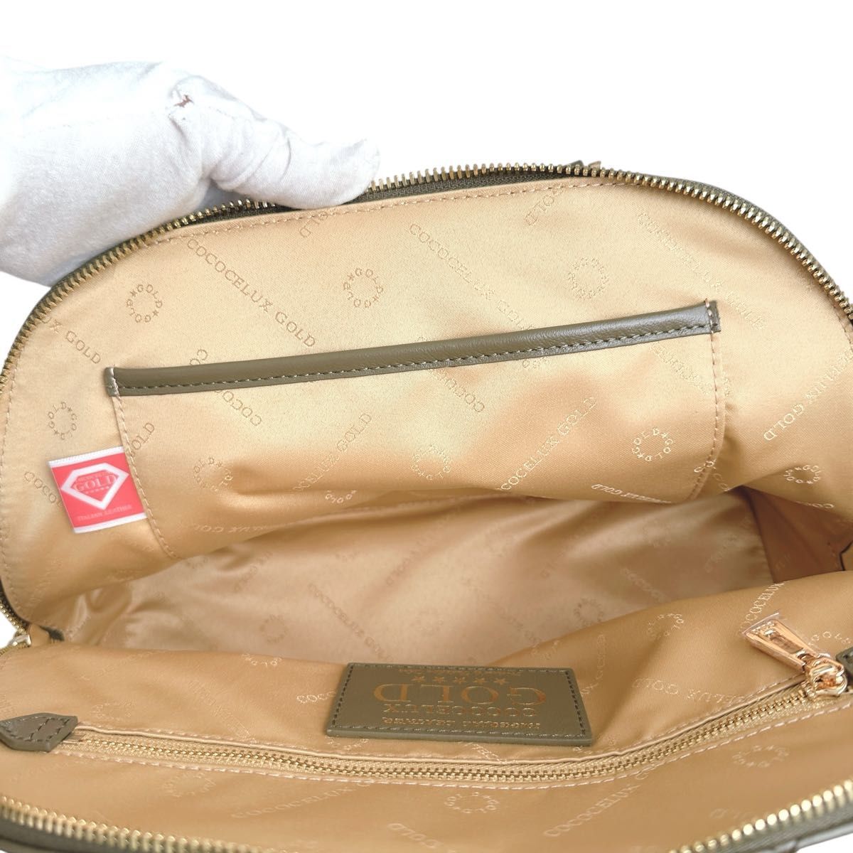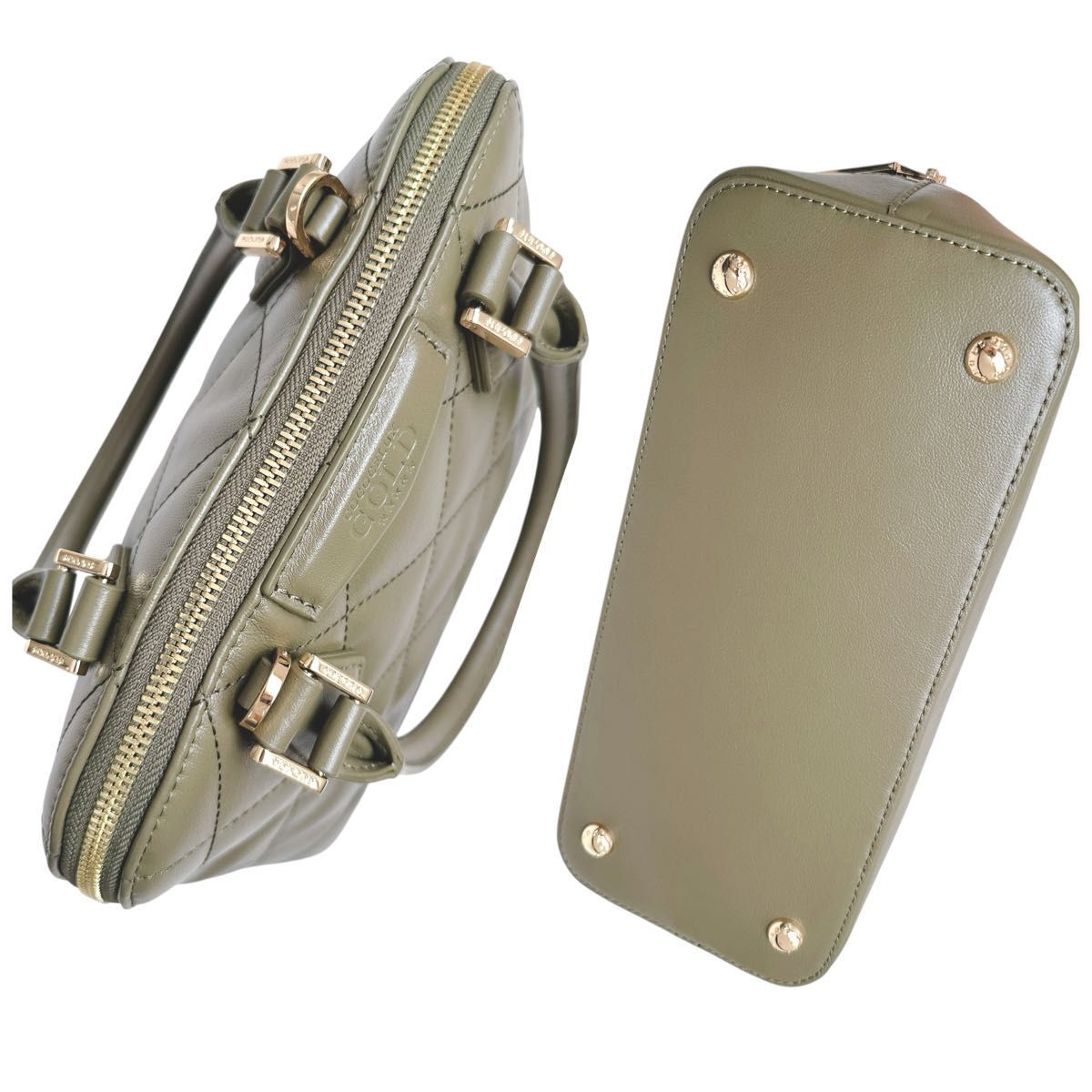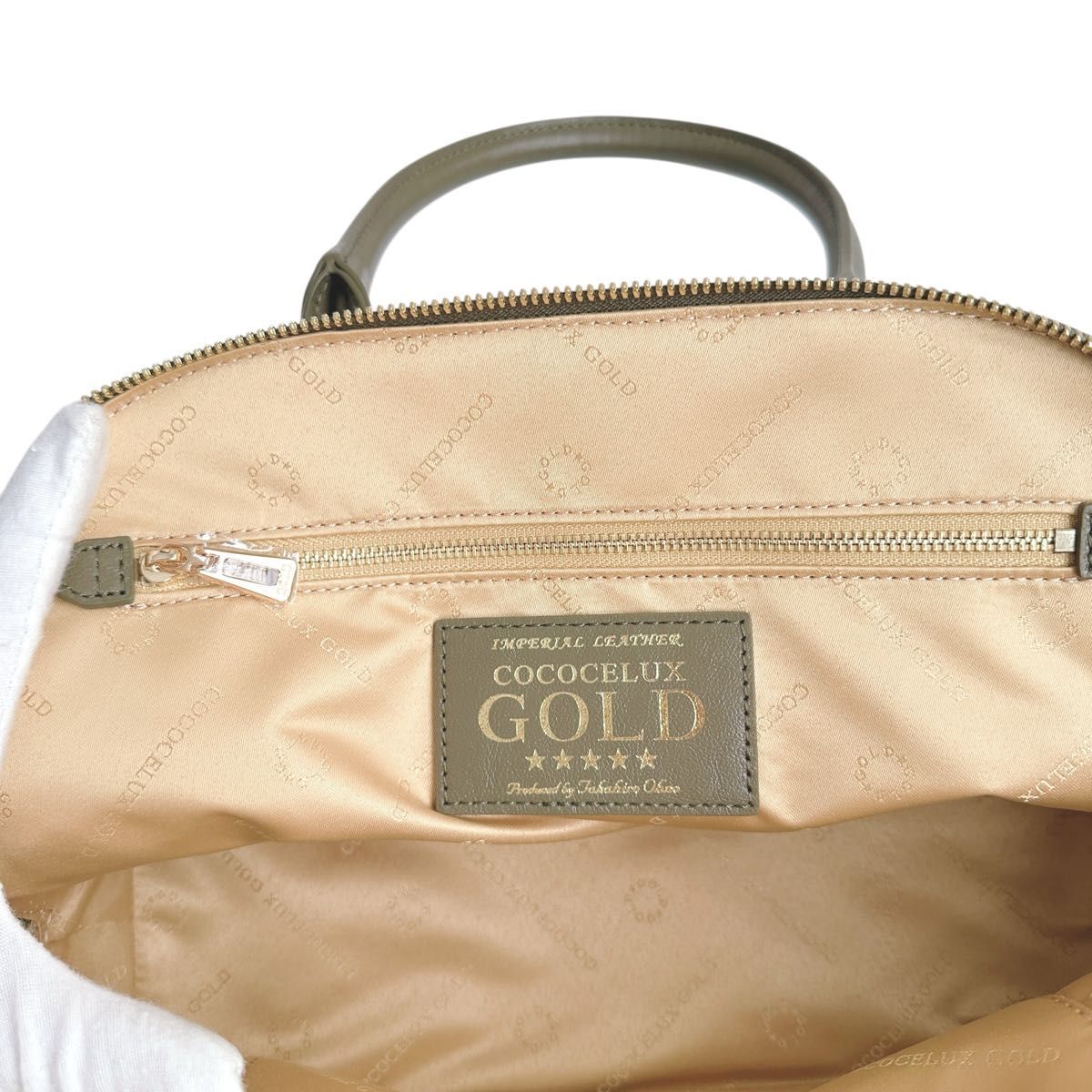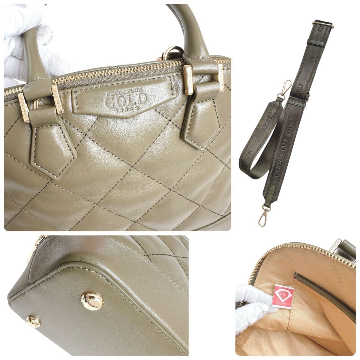 ココセリュックスゴールドの2way ショルダーバック ハンドバックです(^^)キルティングデザインとロゴ入りのショルダーストラップがおしゃれで可愛いです。またダイヤモンドレザーの艶と輝きがおしゃれをさらにランクアップさせてくれます。お色はカーキです。画像にあるものが全てになります。