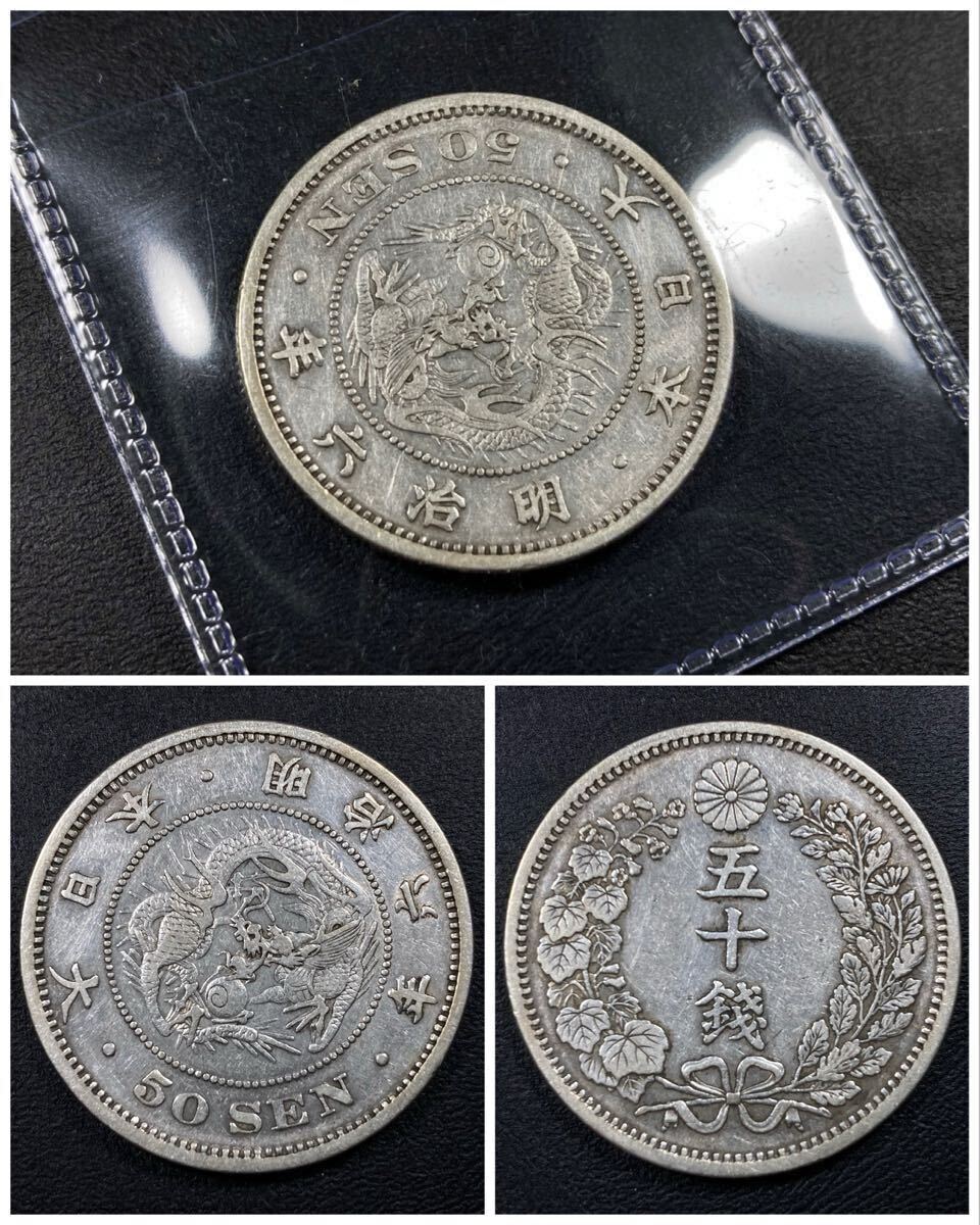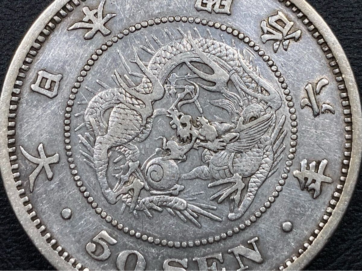 こちらは入手時美品+の竜50銭銀貨の明治6年になります。