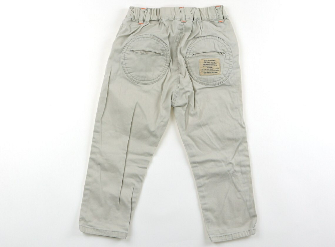 ウエストは総ゴム。実際のサイズ表記は104cm。全体に色あせ・毛羽立ちがありますがまだお使いいただけそうです。