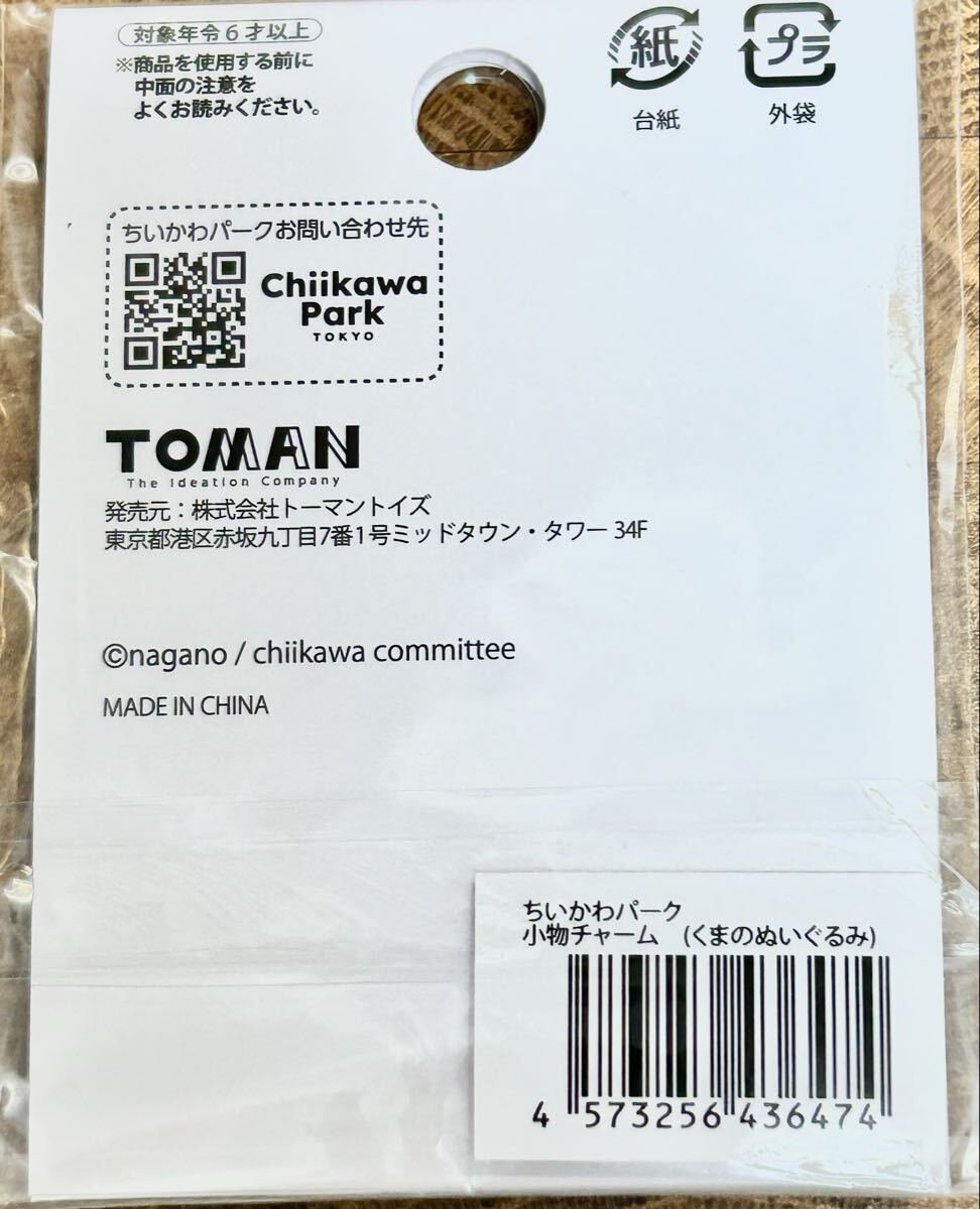 先月ちいかわパークに遊びに行った時に買った大きめのメタルチャームです。