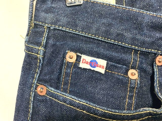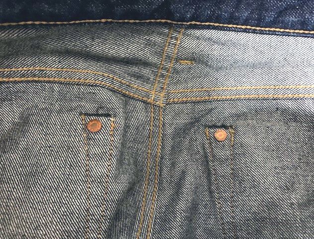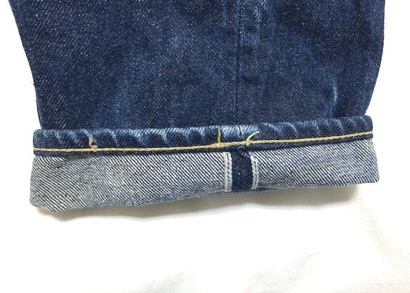 全体にかけて若干の色落ちはございますが、USEDデニムによくありがちな膝の過度な色落ちや裾破れ、股のスレによる色落ちなどはございません。今後にもヒゲなどの色落ちを楽しんで穿いていただける状態です。
