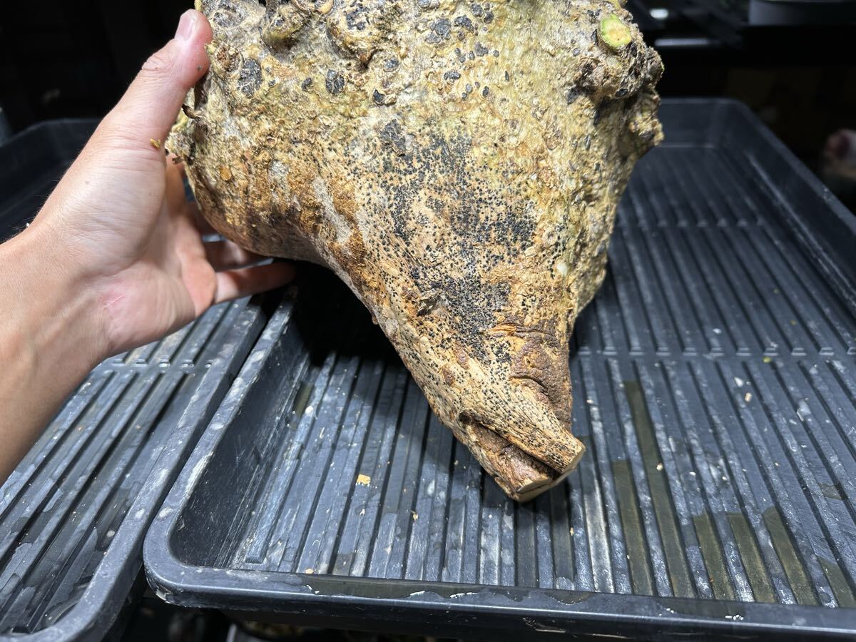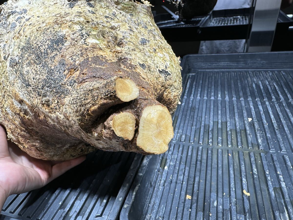 写真撮影日は10/9です。主根を切って腐りが入っていないことを確認しています。撮影後、主根断面を殺菌して乾燥させております。
