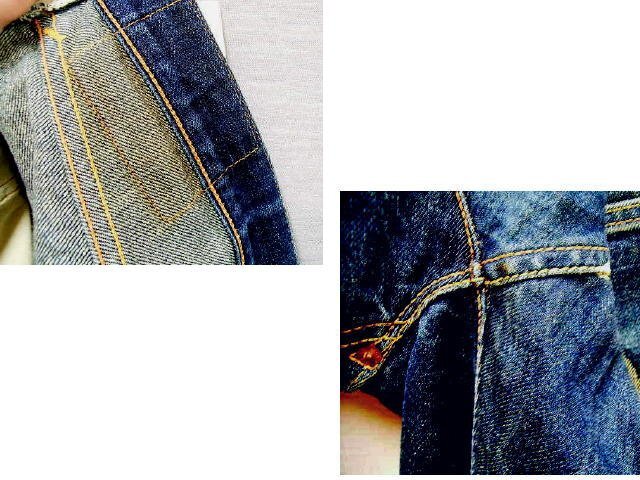 ●アウトシーム黄&黒耳 ●コインポケット黄耳 ●隠しリベット  ●Vステッチ ●ウエスト上部・シングルステッチ  ●オフセットセンターループ ●革パッチ ●股リベット  etc...