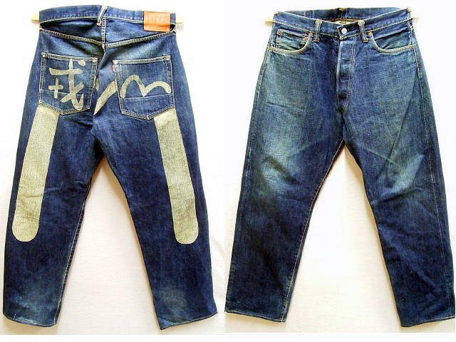 即決[W34]美色 色落ち EVISU 2001 NO.2 大黒 ペイント ホワイト クリーム色 日本製 ビンテージ復刻 エヴィス デニム パンツ■1670