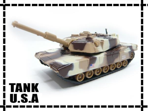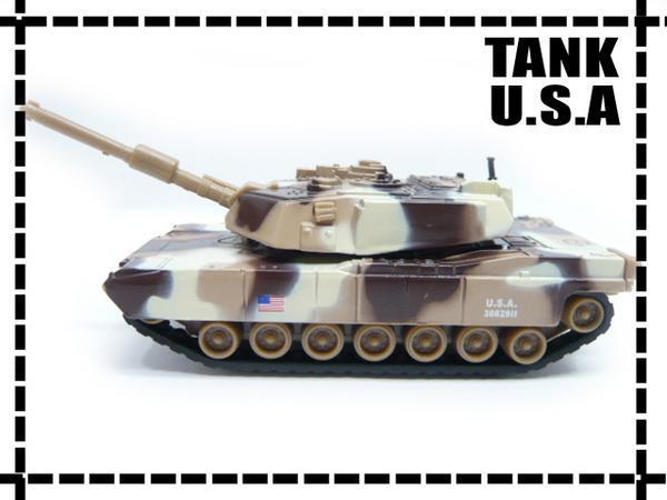 アメリカ軍主力戦車M1エイブラムスのミニカー! 砂漠仕様のカモフラージュカラー 下部にタイヤが付いており、プルバックアクションで チョロQみたいに走らせることができます。 前輪は砲塔と連動しており、走行させると砲塔がわずかですが、左右に動きます。 砲身は上下に動かせます。 キャタピラは転輪などと一体成型ではなく、ゴム製の物を履いています。 車体上部、砲塔は金属製。 砲身、車体下部はプラ製。 サイズ:長さ約13.7cm 幅約5.4cm 高さ約4.5cm ※こちらの商品は専用の箱入り商品ではございませんので ご注意くださいませ。 仕入れ時からの擦り傷、プリントミス等あるかもしれません。 予めご了承くださいませ。 |