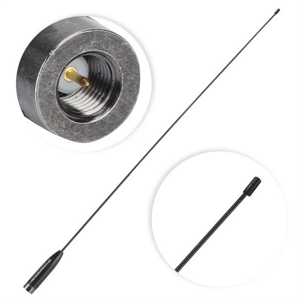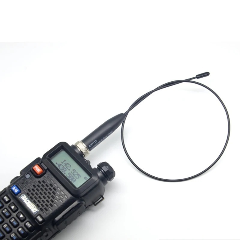 超弾性合金エレメント使用、折り曲げ可能な超軽量19g、いろいろコンパクトな時代ですが単純に長ければ飛びます、拾います。付属アンテナより飛距離を伸ばしたいときにご利用ください。144(1/4λ)、430(1/2λ)ほかエアバンド受信対応、ほとんどの海外製ハンディ機ではご使用いただけません、写真のコネクター形状に十分ご注意ください。