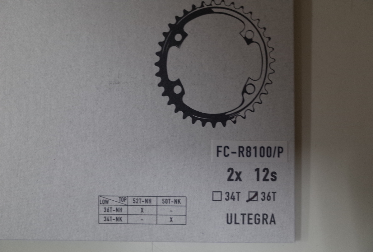 商品説明 | ・36T(52-36T用)。 ・2x12速用。 ・シマノコード:Y0NG36000。 |