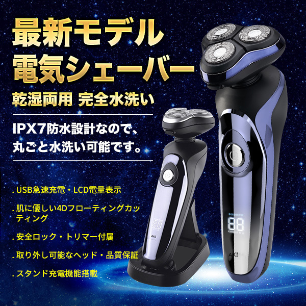 電池残量表示 充電機能搭載スタンド 電気シェーバー 回転式 電動ひげそり USB充電 快速充電 深剃り メンズ シェーバー 丸ごと水洗い可