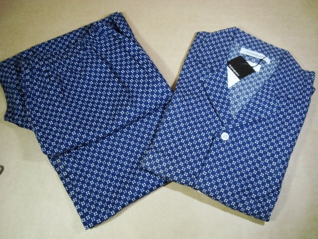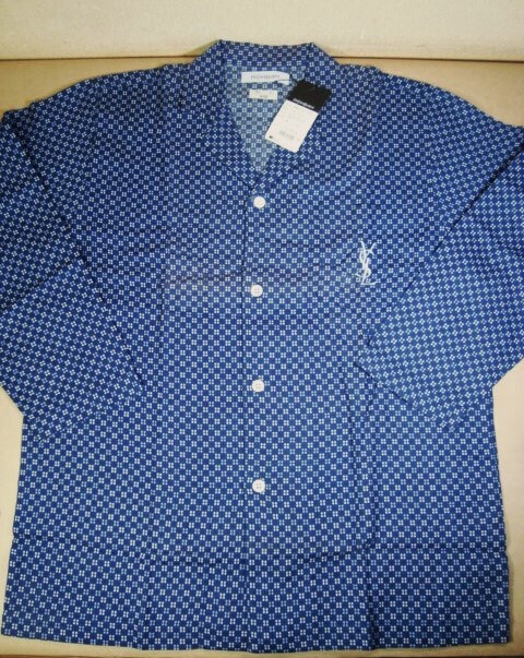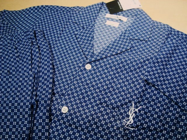 イヴサンローラン★メンズパジャマ/紺色×スクエアドット柄★長袖長ズボン★Lサイズ★タグ付未使用品やや難有