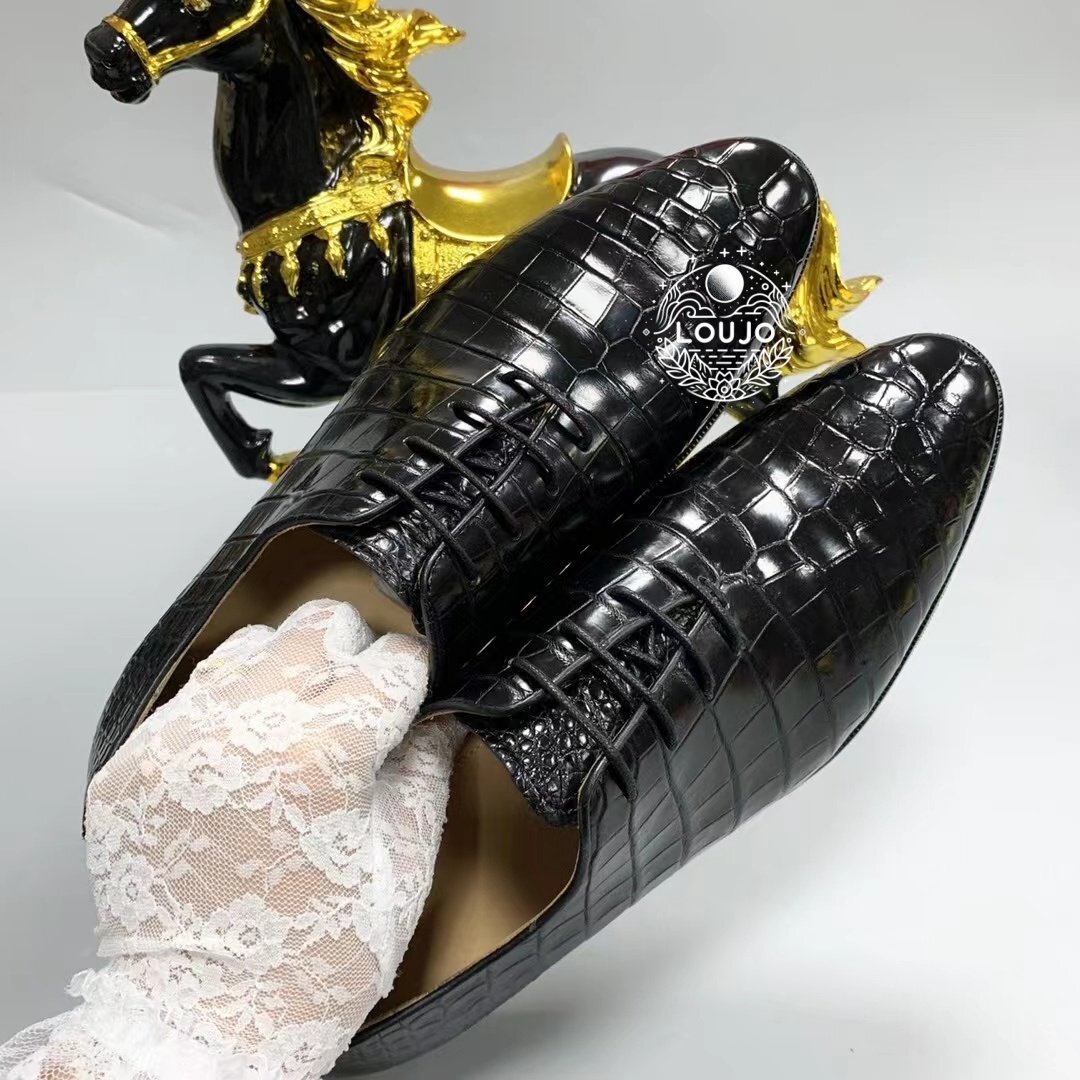 クロコダイルレザー ビジネスシューズ 幅広 本革 モカシン スリッポン ローファー メンズシューズ 通勤用 紳士靴 黒24-27cm可選