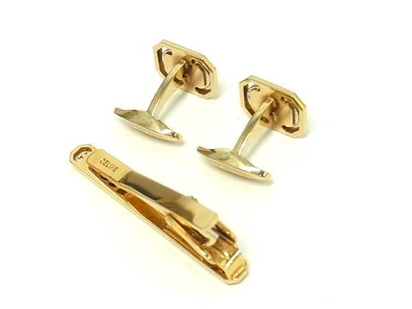 ■美品■ CELINE セリーヌ 馬車金具 マカダム カフスボタン カフリンクス ネクタイピン アクセサリー 2点セット ゴールド系 DK3420