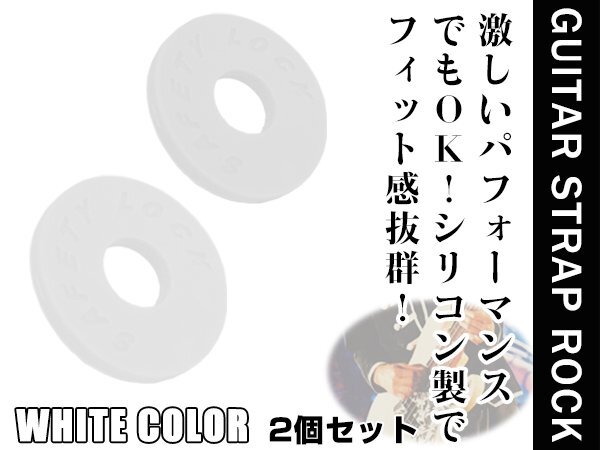 落下防止/ライブ用ギターストラップロック エレキギター アコギ ベース シリコンゴム製 ホワイト 白 2個セット エンドピン ストラップピン