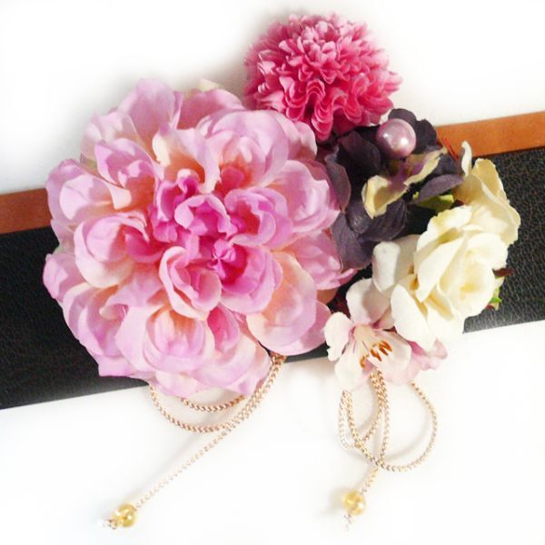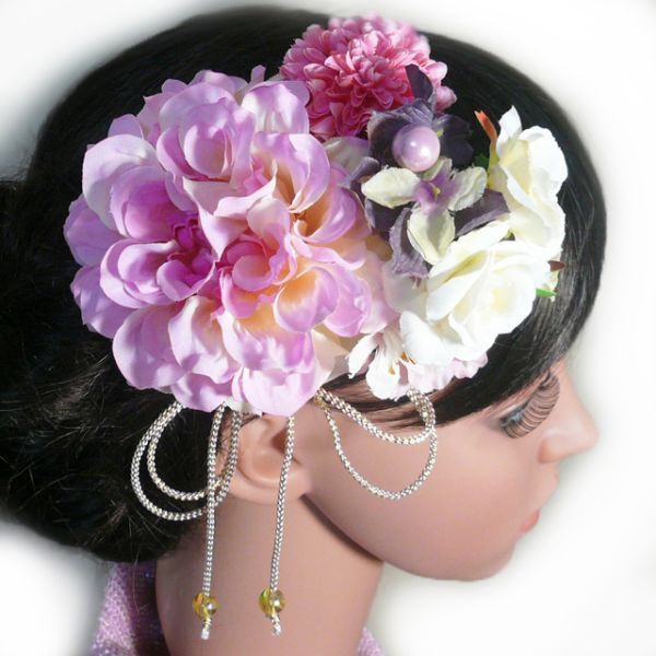 アートフラワーの髪飾りです ピンク系 ダリアはコサージュピン付きです