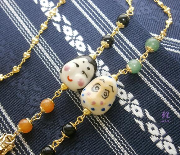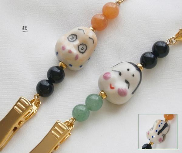 【 雅 】 取り外し可♪おかめひょっとこ*天然石 オリジナル袂留め