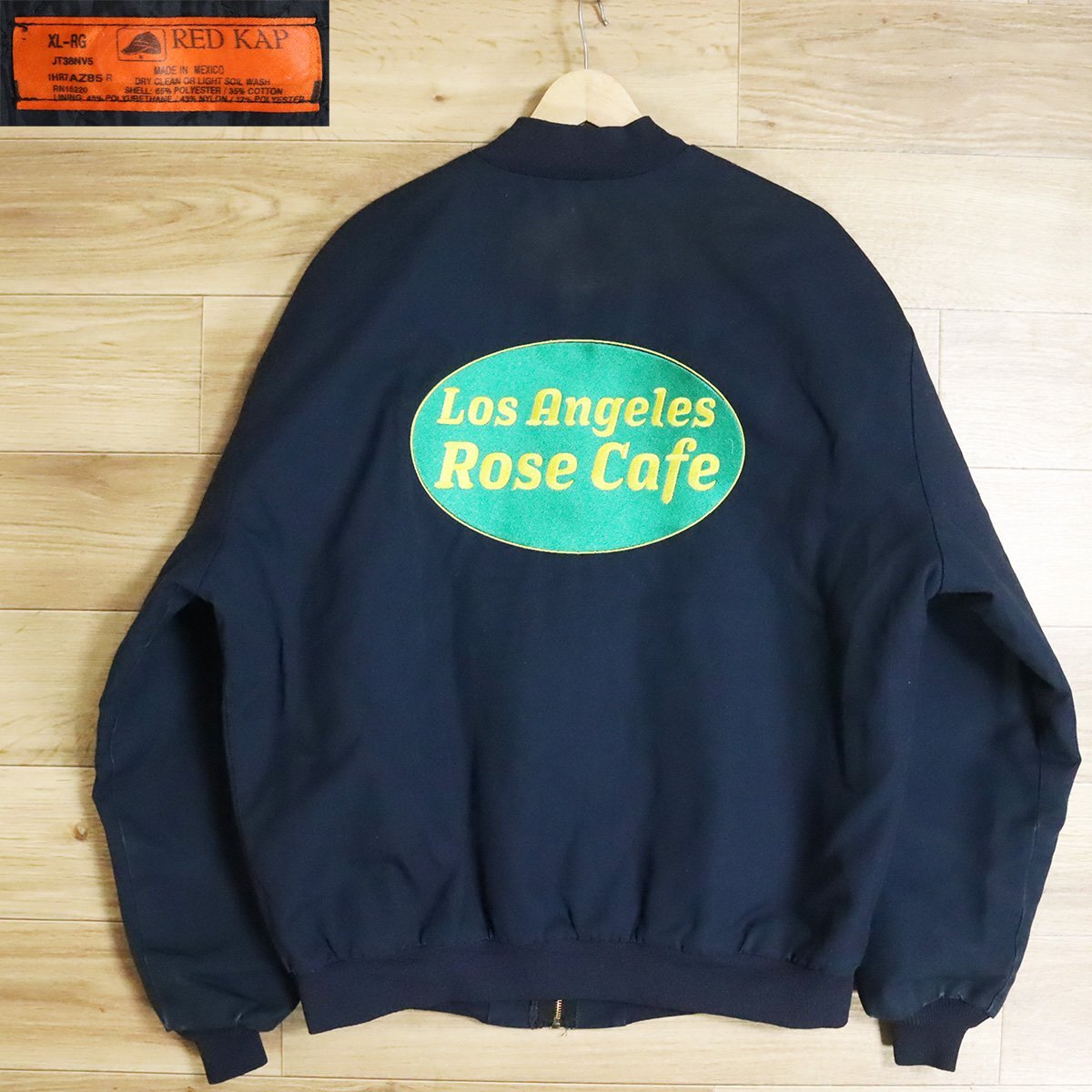 C5T/D10.6-1 アメリカ古着 RED KAP レッドキャップ ワークジャケット XL バック刺繍 ワッペン ROSE CAFE ジャンパー ブルゾン