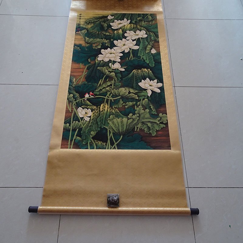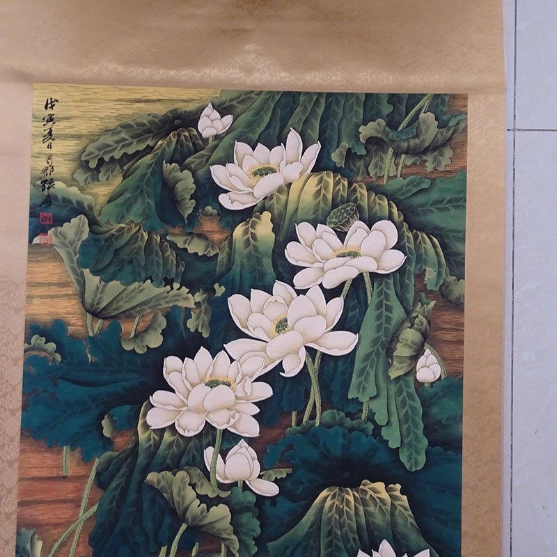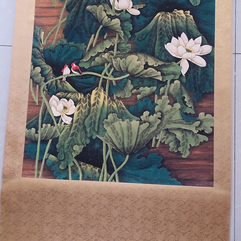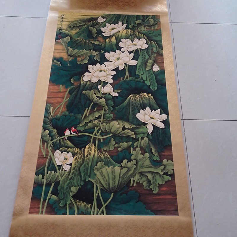 張大千 花鳥画 荷巻物掛画 条幅 花鳥巻 縦幅 蓮花画 東洋画 国画 中堂画 掛け物