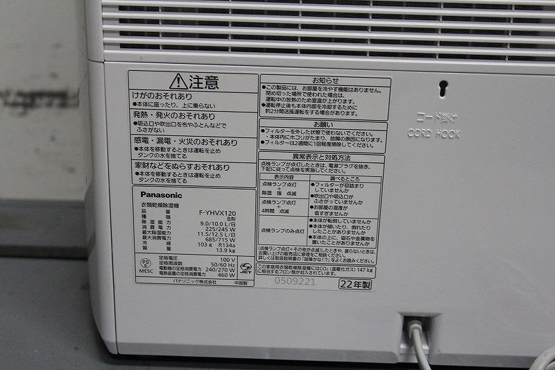 商品名衣類乾燥除湿機 [本体のみ] F-YHVX120