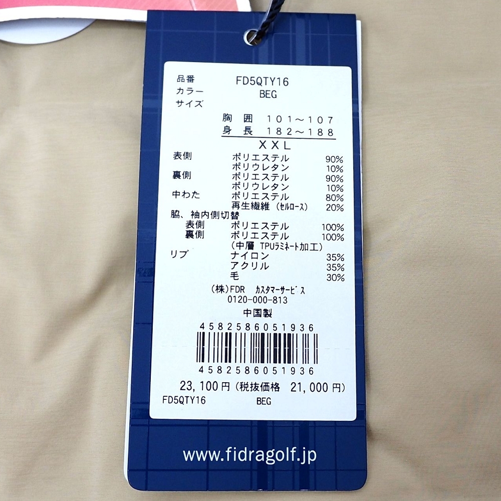 H06372 新品 FIDRA/シームレスブルゾン 【サイズ:XXL】 ベージュ FD5QTY16 ジャケット 2WAYストレッチ ゴルフウエア フィドラ メンズ
