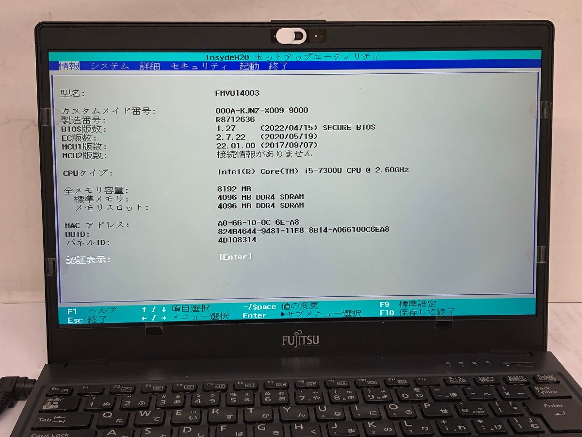 ジャンク/ FUJITSU FMVU14003 LIFEBOOK U938/S Intel Core i5-7300U メモリ8.19GB ストレージ無し 【K22232】