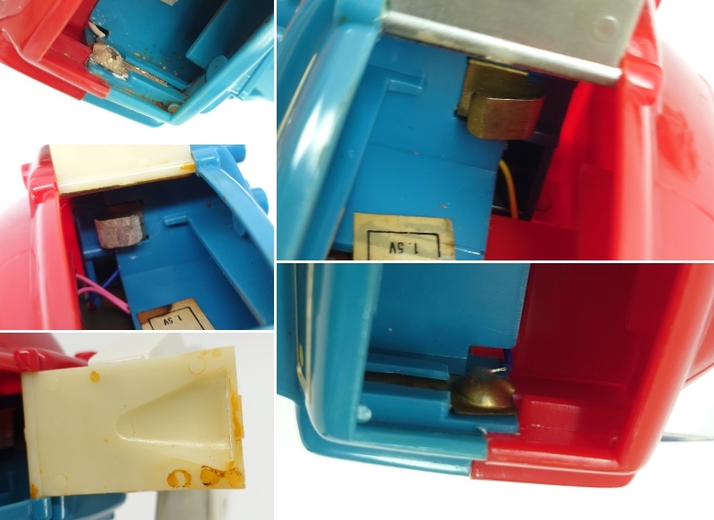 向かって右側の電池ボックスに液漏れ?サビ?、左側にもくすみがあり、
