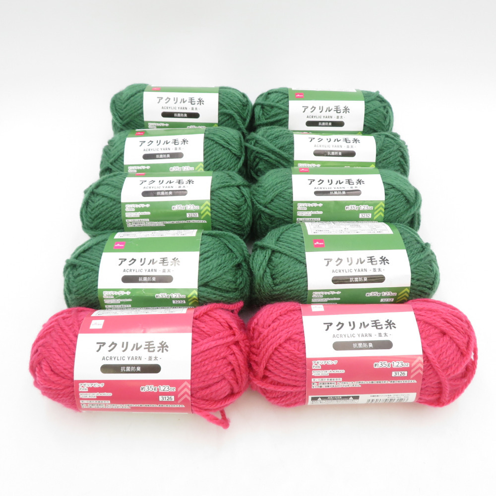 | DAISO ダイソー 毛糸 抗菌防臭アクリル毛糸 並太 カラフル 10玉セット ビリジアングリーン アゼリアピンク 1玉35g 約59m 未使用品 |