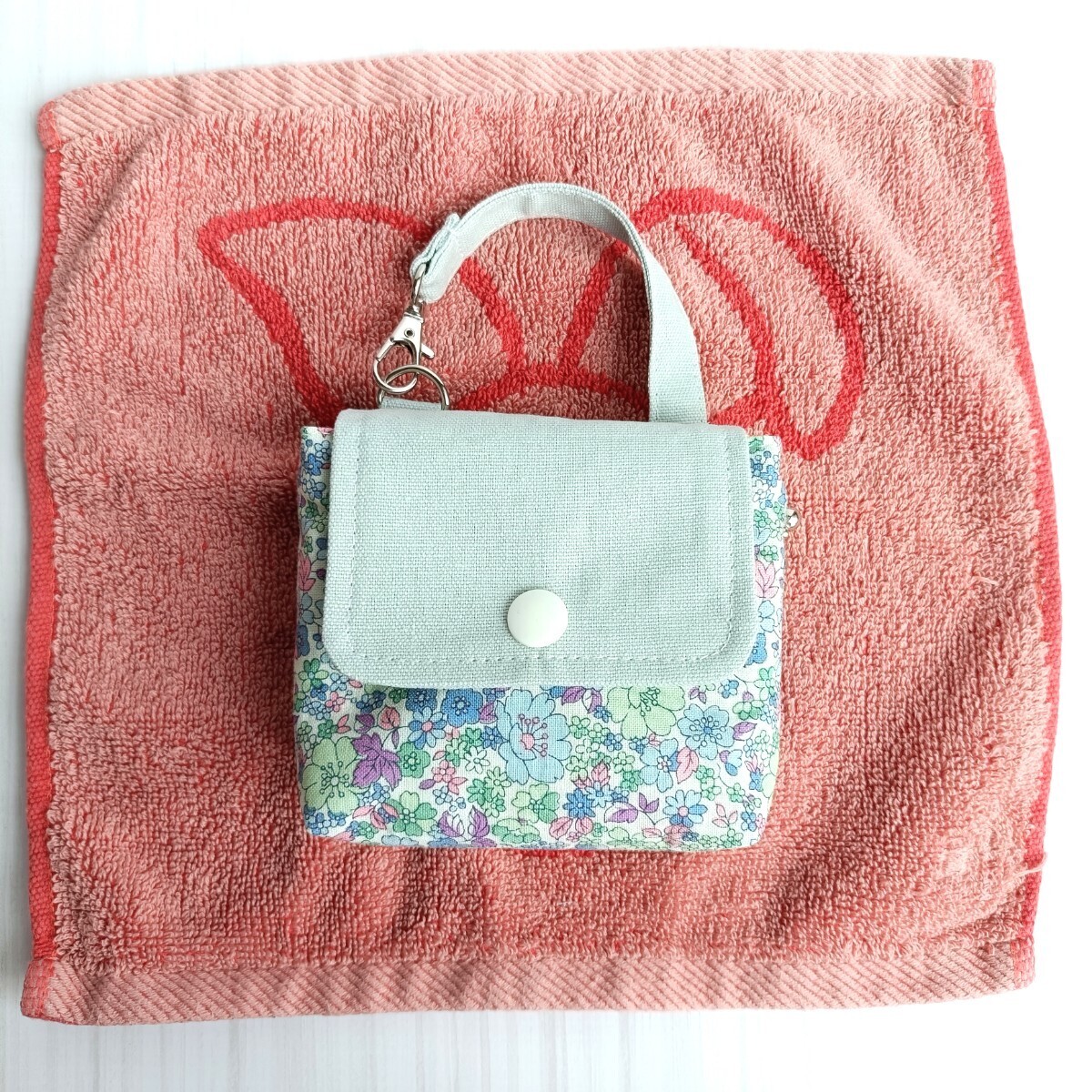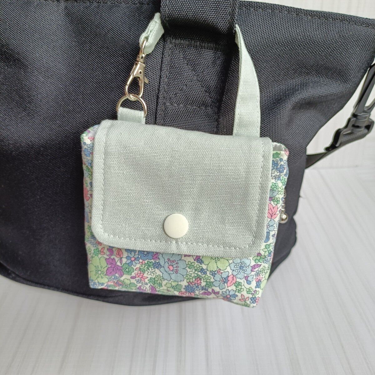 こちらはカバンなどに吊り下げて使うことができるミニポーチです。
