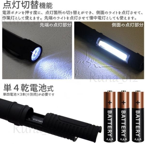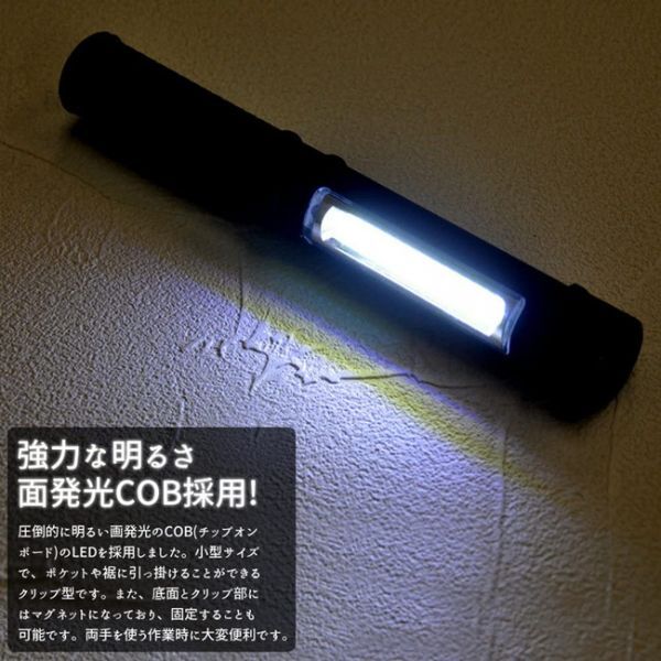 ☆送料無料☆  2WAY 超強力 LED ワークライト ブラック マグネット付 クリップ付 作業灯 ハンディライト COB 懐中電灯 広範囲照射