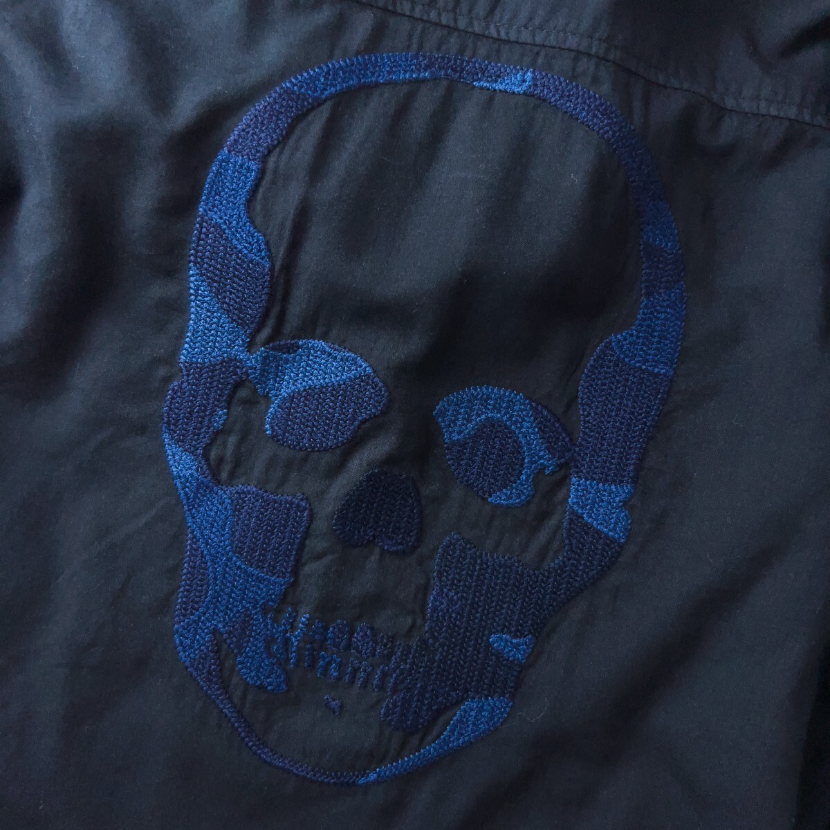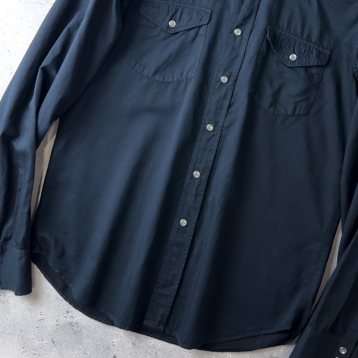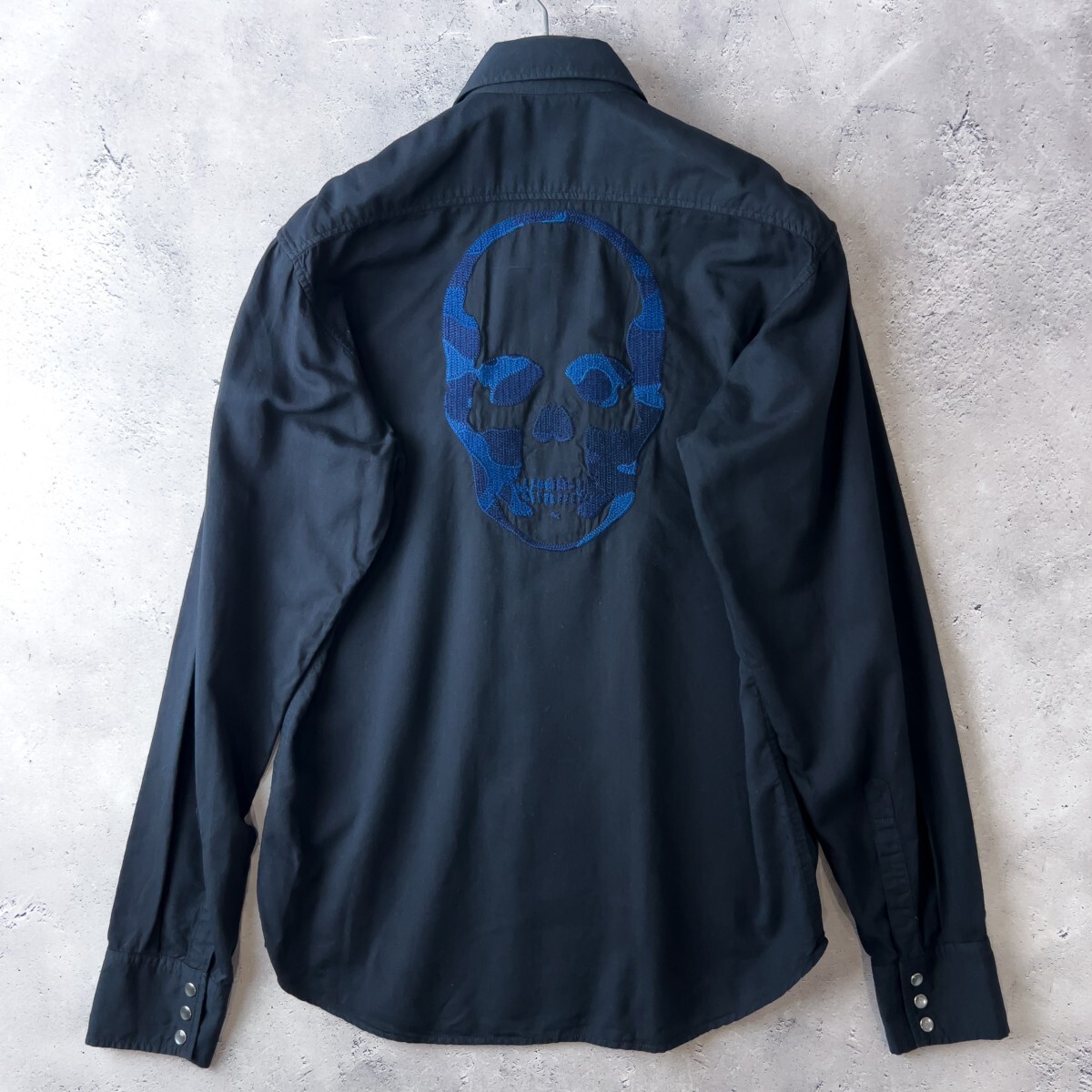 美品 lucien pellat-finet ルシアンペラフィネ スカル 刺繍 長袖 カジュアル シャツ トップス / メンズ M 黒 ブラック 日本製 Y2K 古着