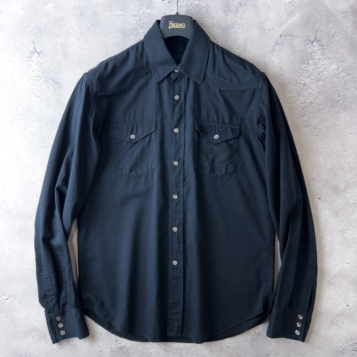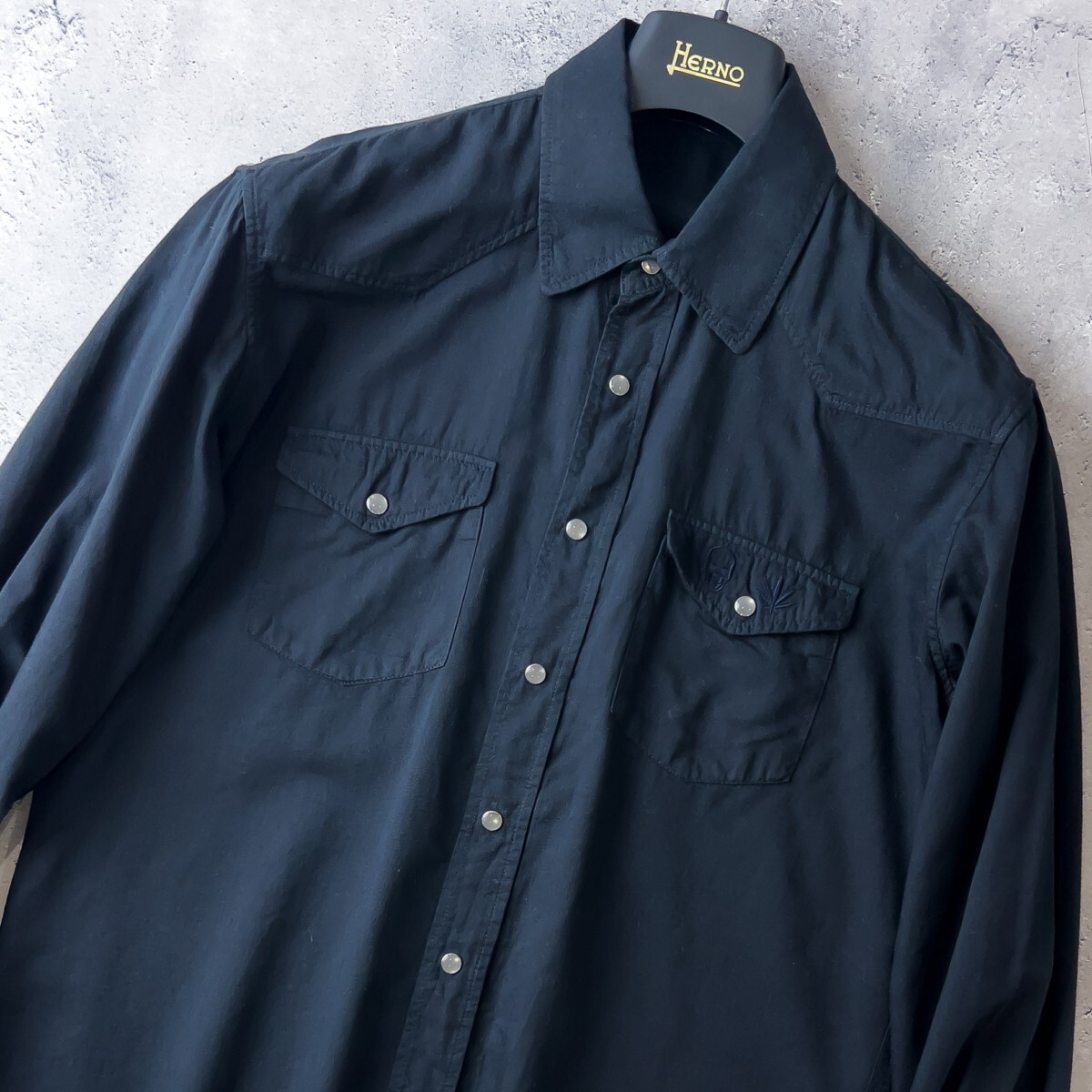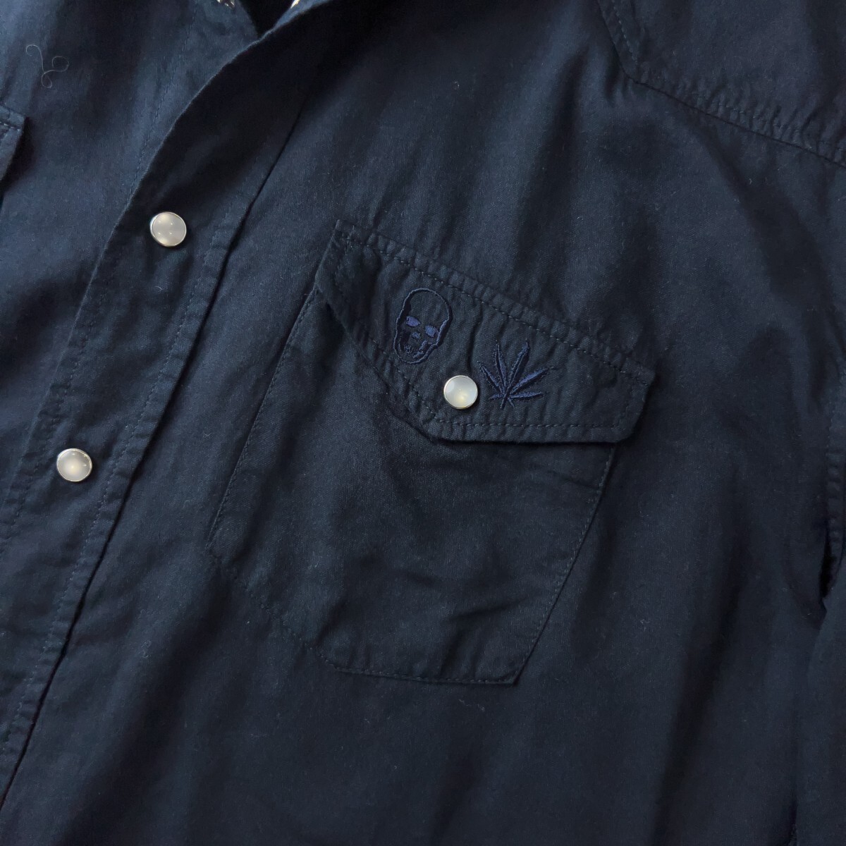 美品 lucien pellat-finet ルシアンペラフィネ スカル 刺繍 長袖 カジュアル シャツ トップス / メンズ M 黒 ブラック 日本製 Y2K 古着