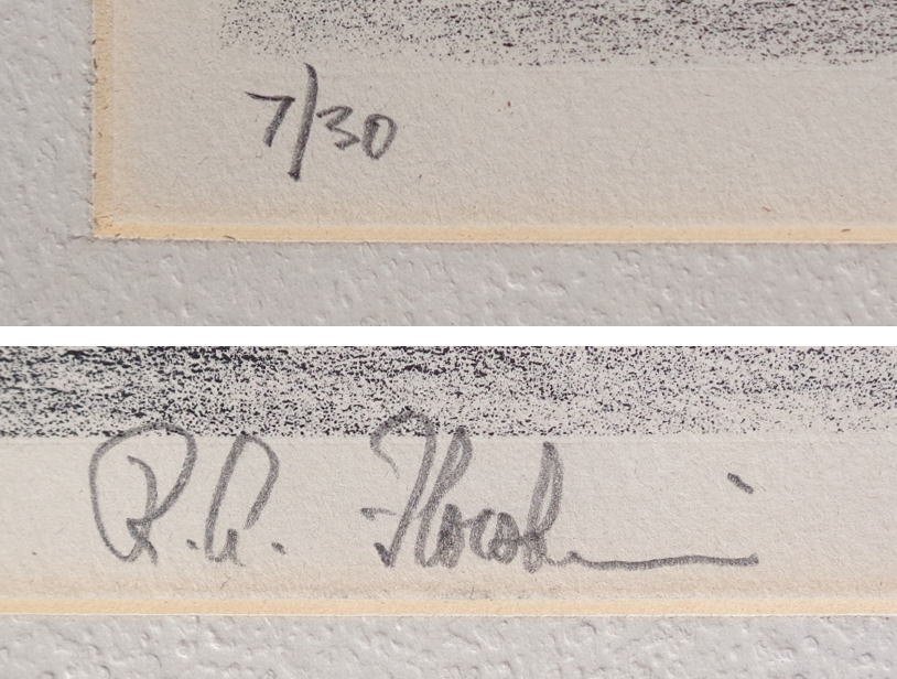 出品のリトグラフは限定30部の数少ないもので作家直筆サインありますが、スペルが判読できず作家特定出来ませんでした。