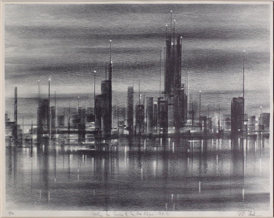 他の高額作品の中に混じっていた作家作品として考えれば、このモノクロの摩天楼の風景のリトグラフも筋の良いものではないかと思われます。